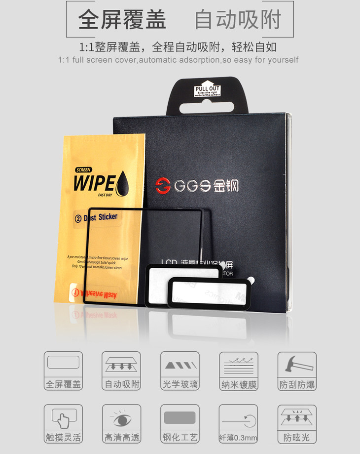 狼族优选丨狼族优选 | 单反/微单相机 单钢化膜单屏 高清防刮防爆自动吸附