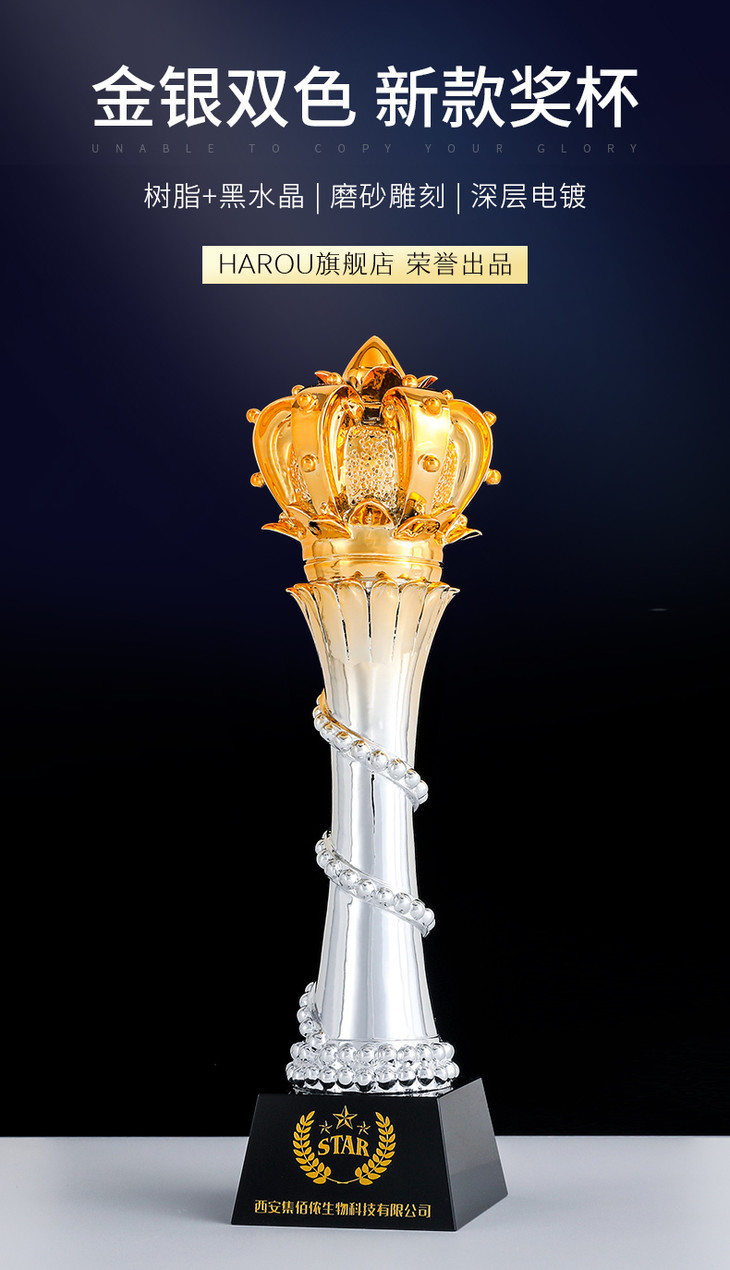 奖杯皇冠团队冠军比赛运动会高档优秀员工颁奖纪念品创意定制定做