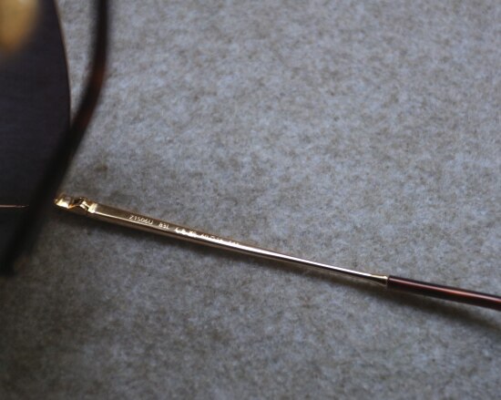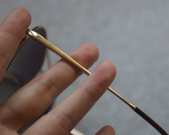 镜腿 外侧字母 是激光雕刻 字体虽很小 但能摸出凹槽的棱感