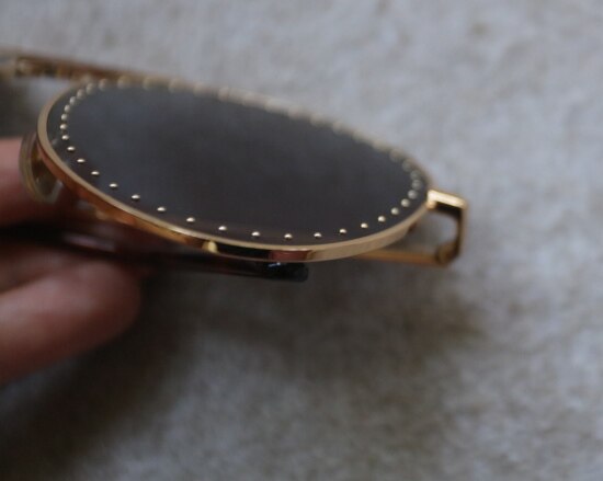 而且 那个钉钉 很小很精致 侧面看是鼓起的 跟框架一样 也是真金电镀的