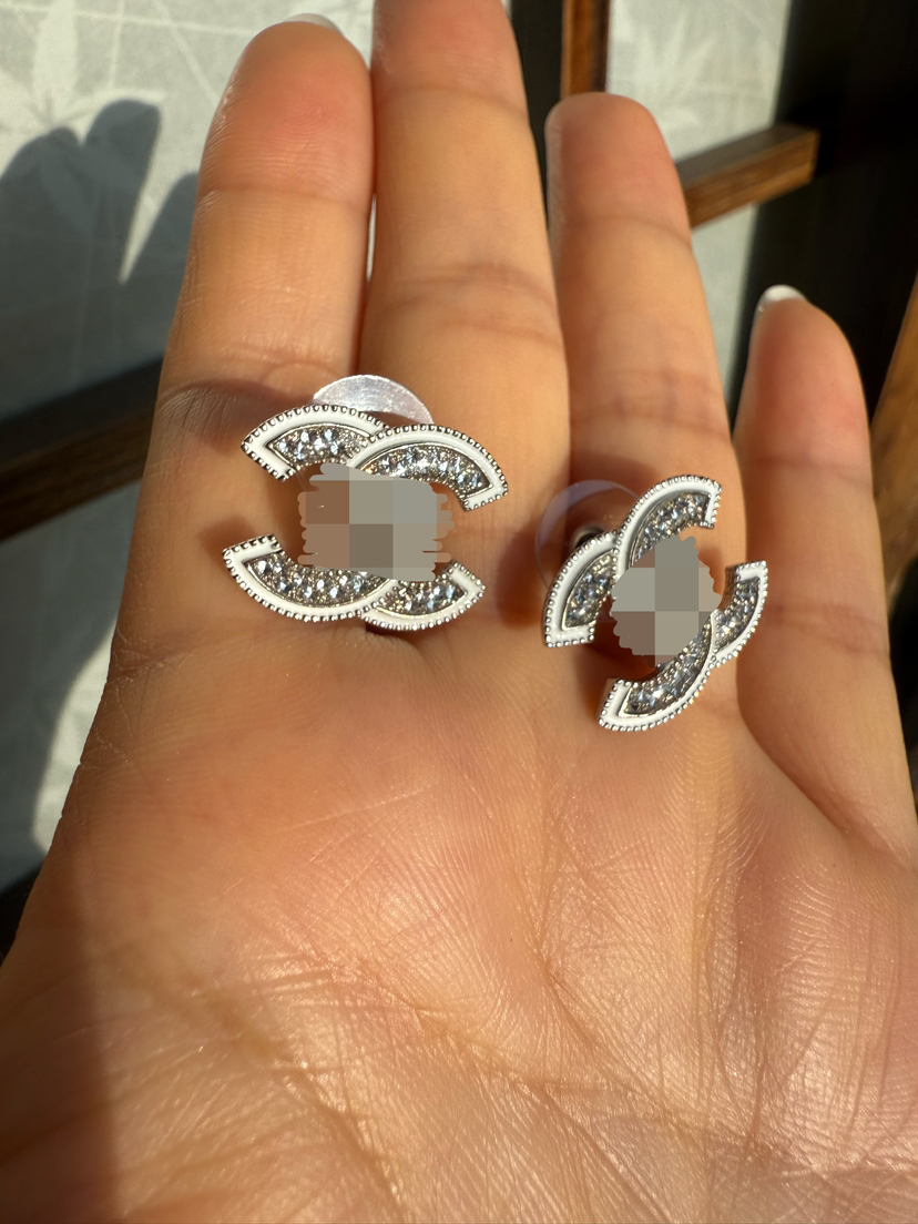 523-2 真香老渠道 25C 晶钻双C 白色珐琅镶边 双C爆闪 耳钉 自留 利用率超高