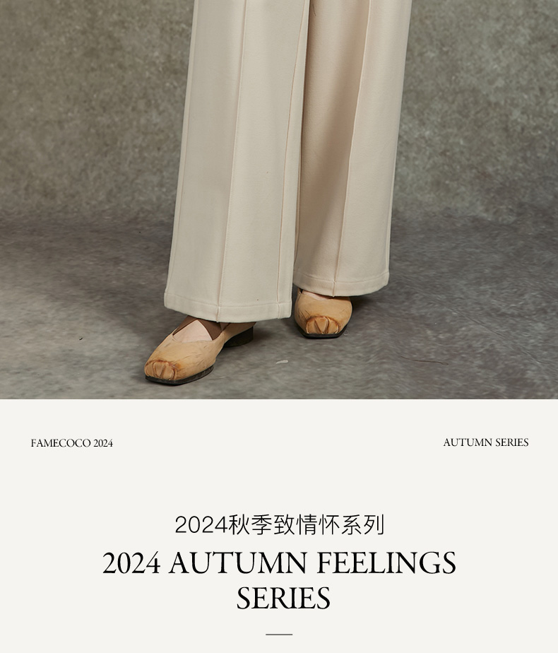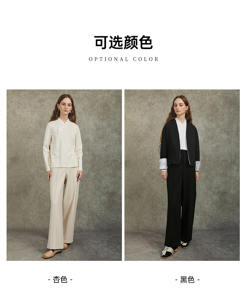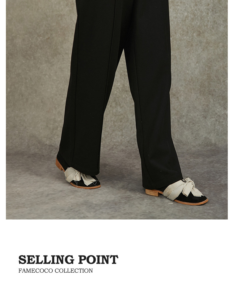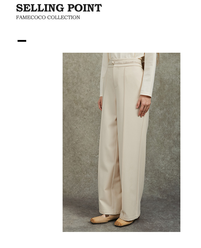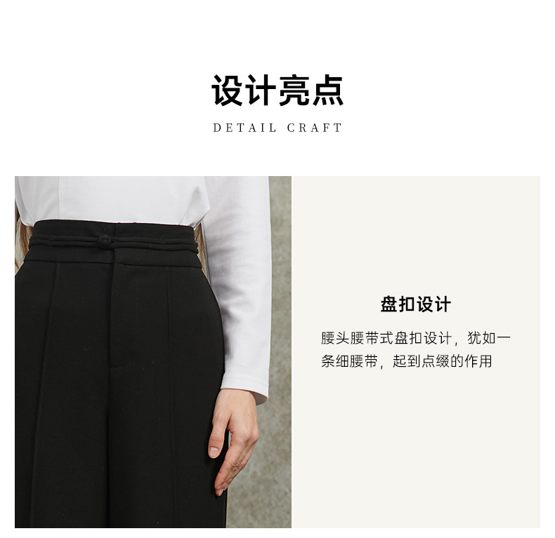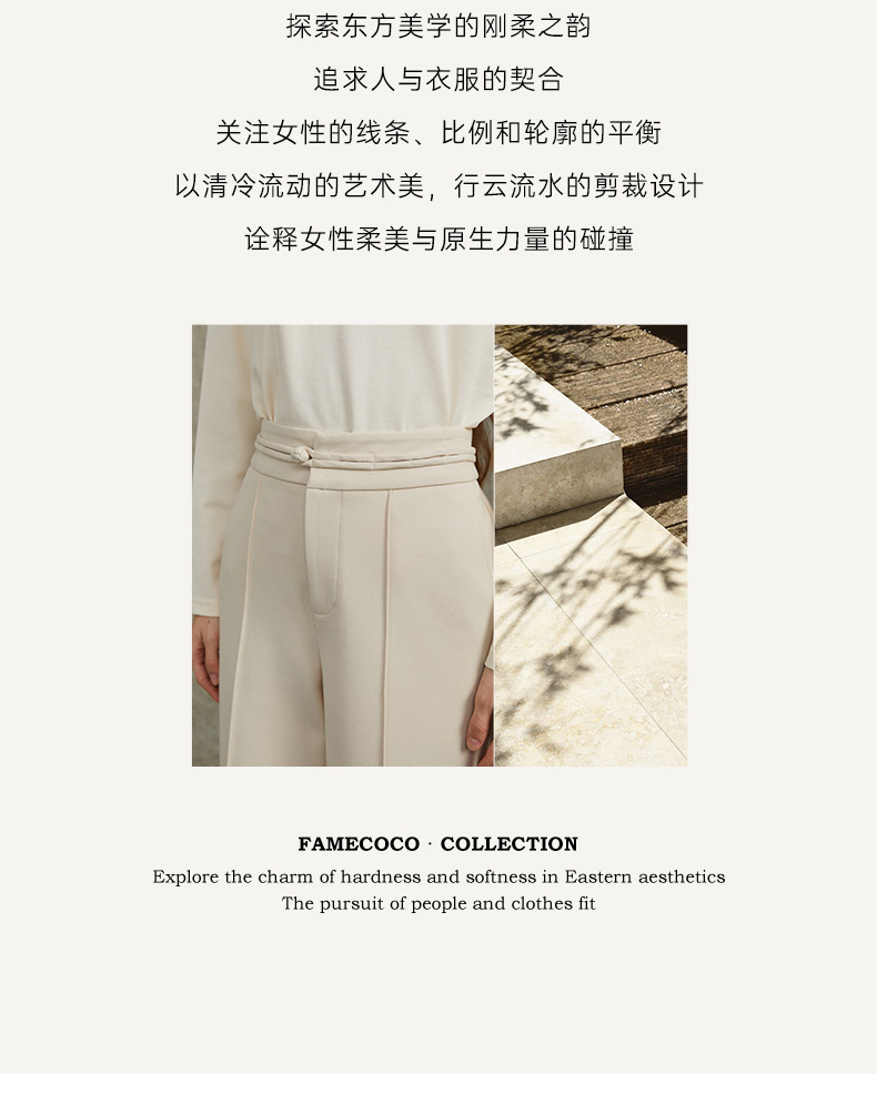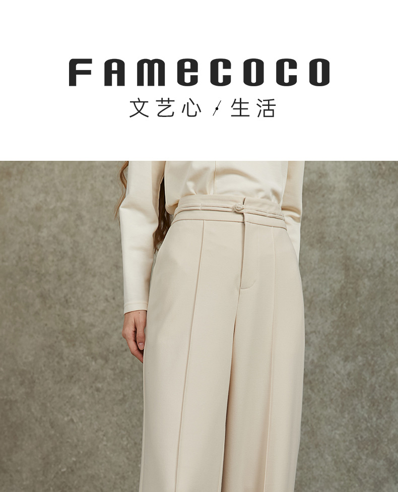 Famecoco范可儿直筒宽松休闲裤国风盘扣松紧腰长裤FAC6GA009