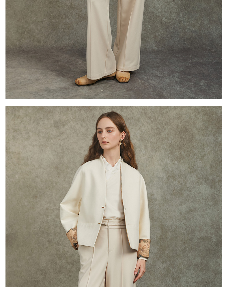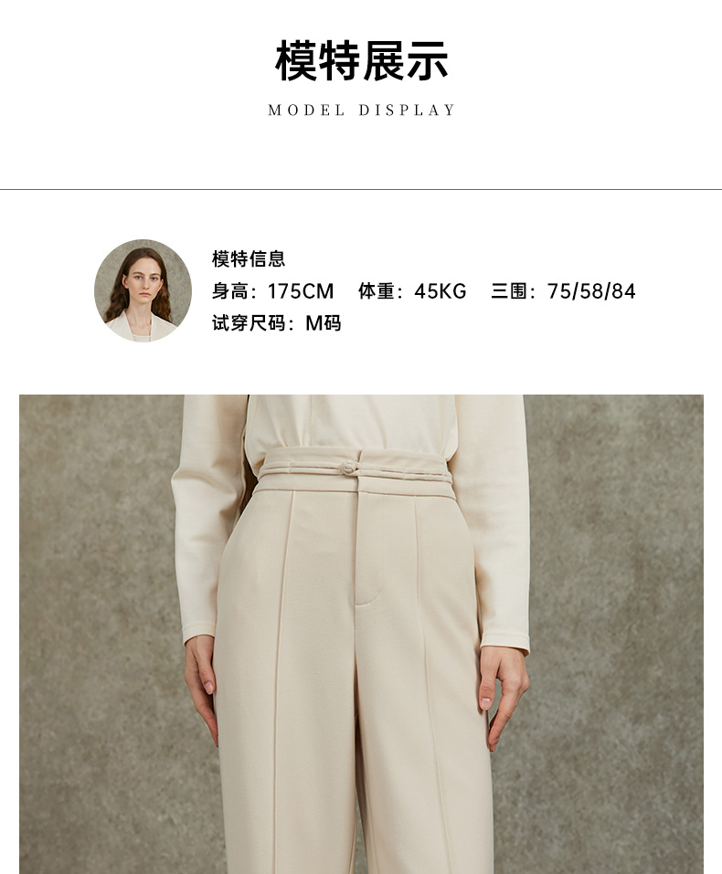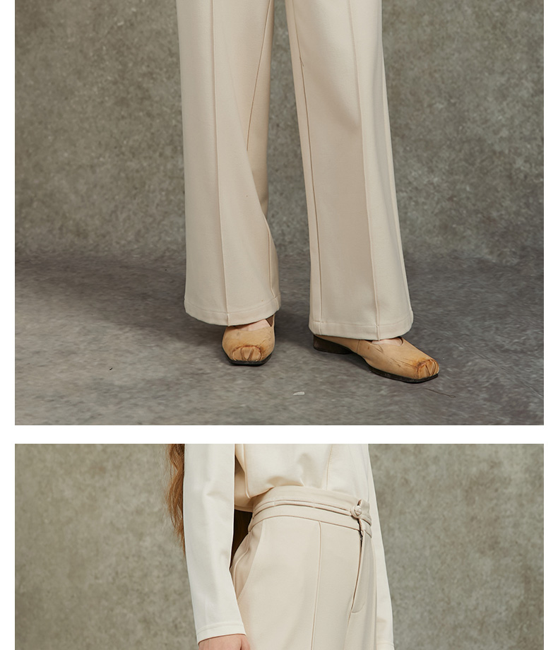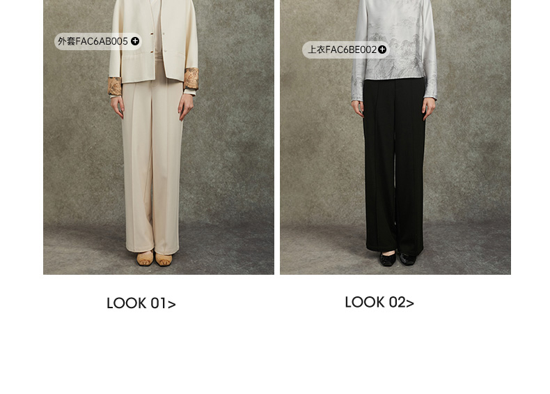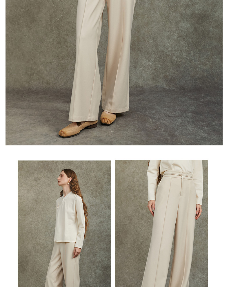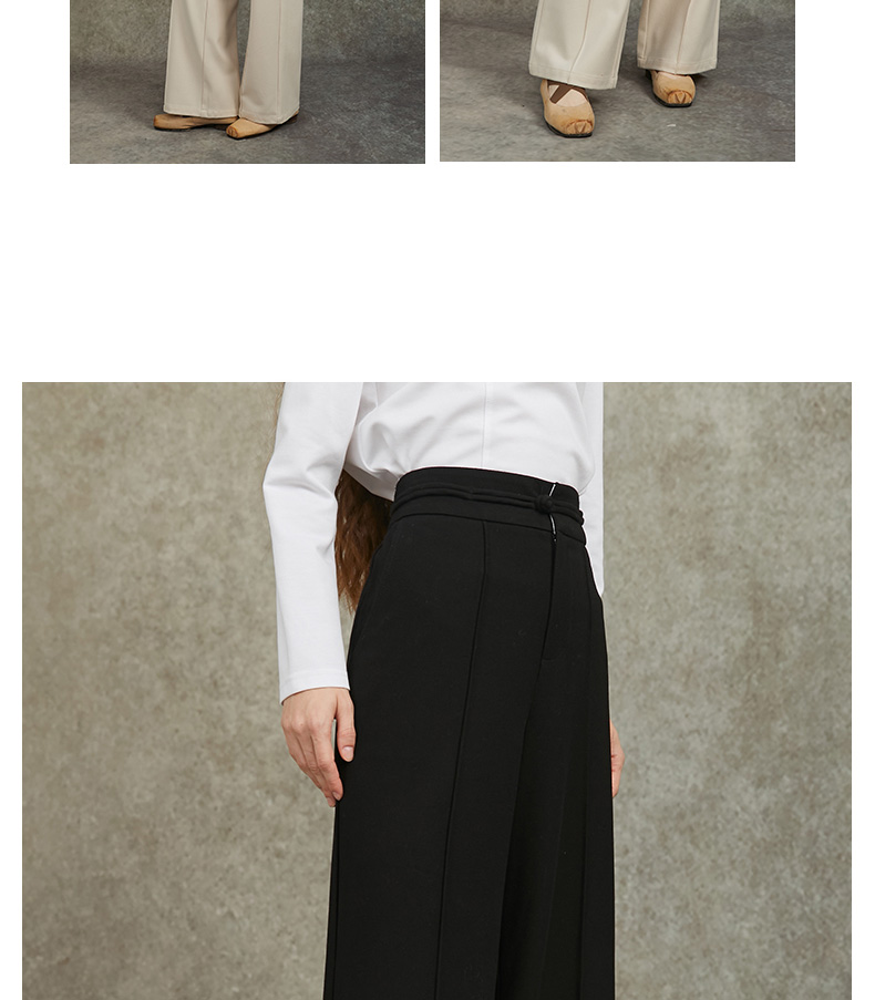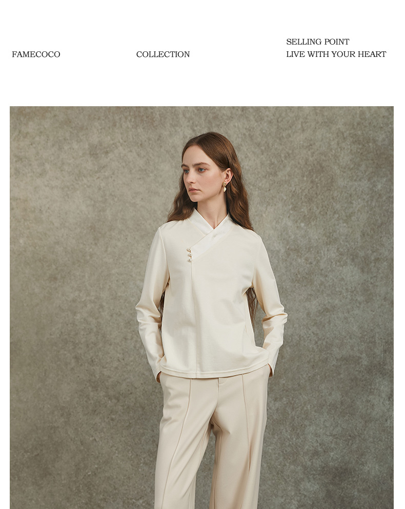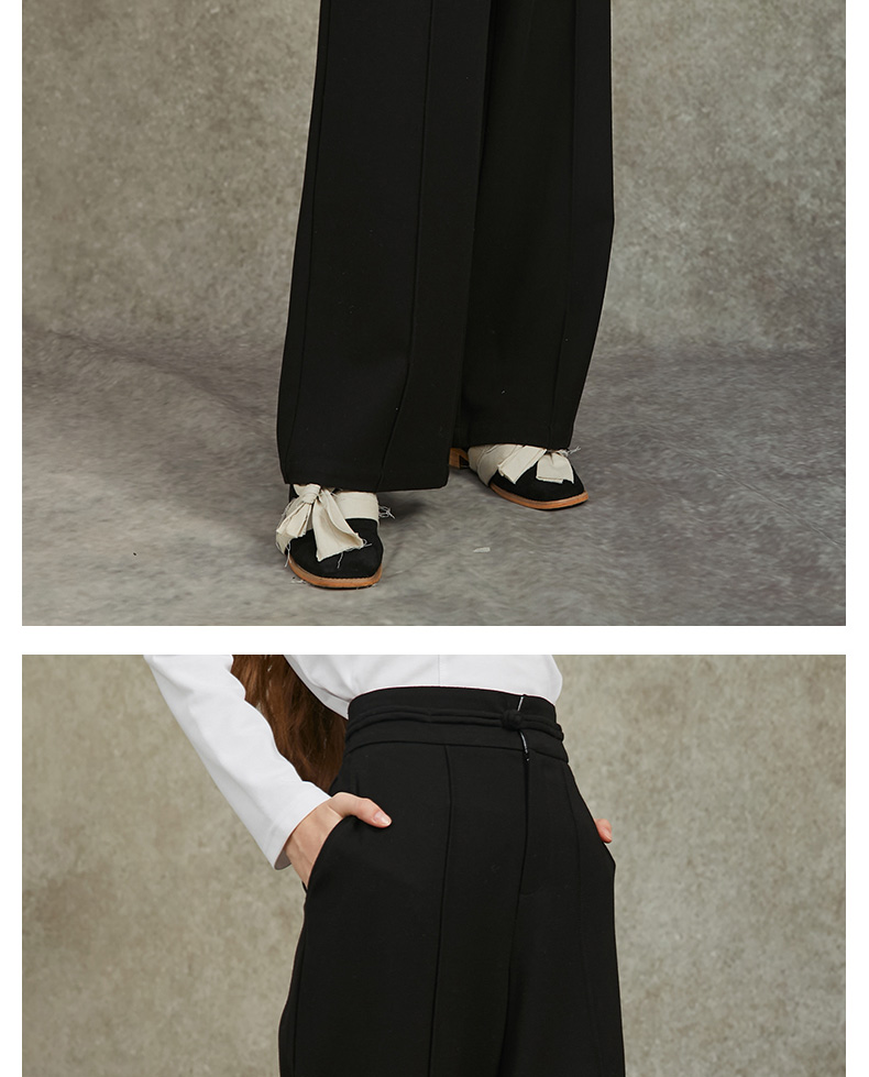 Famecoco范可儿直筒宽松休闲裤国风盘扣松紧腰长裤FAC6GA009