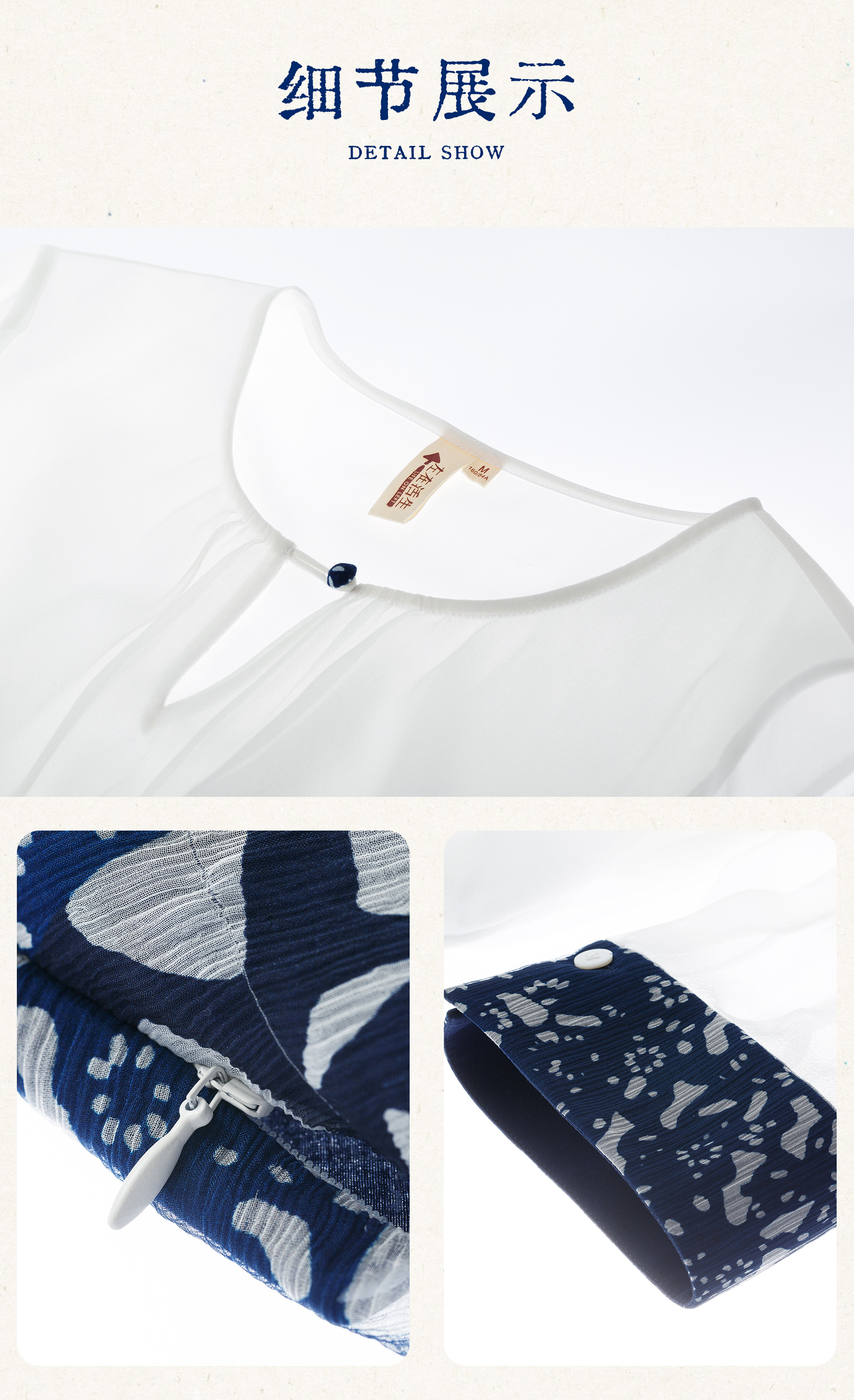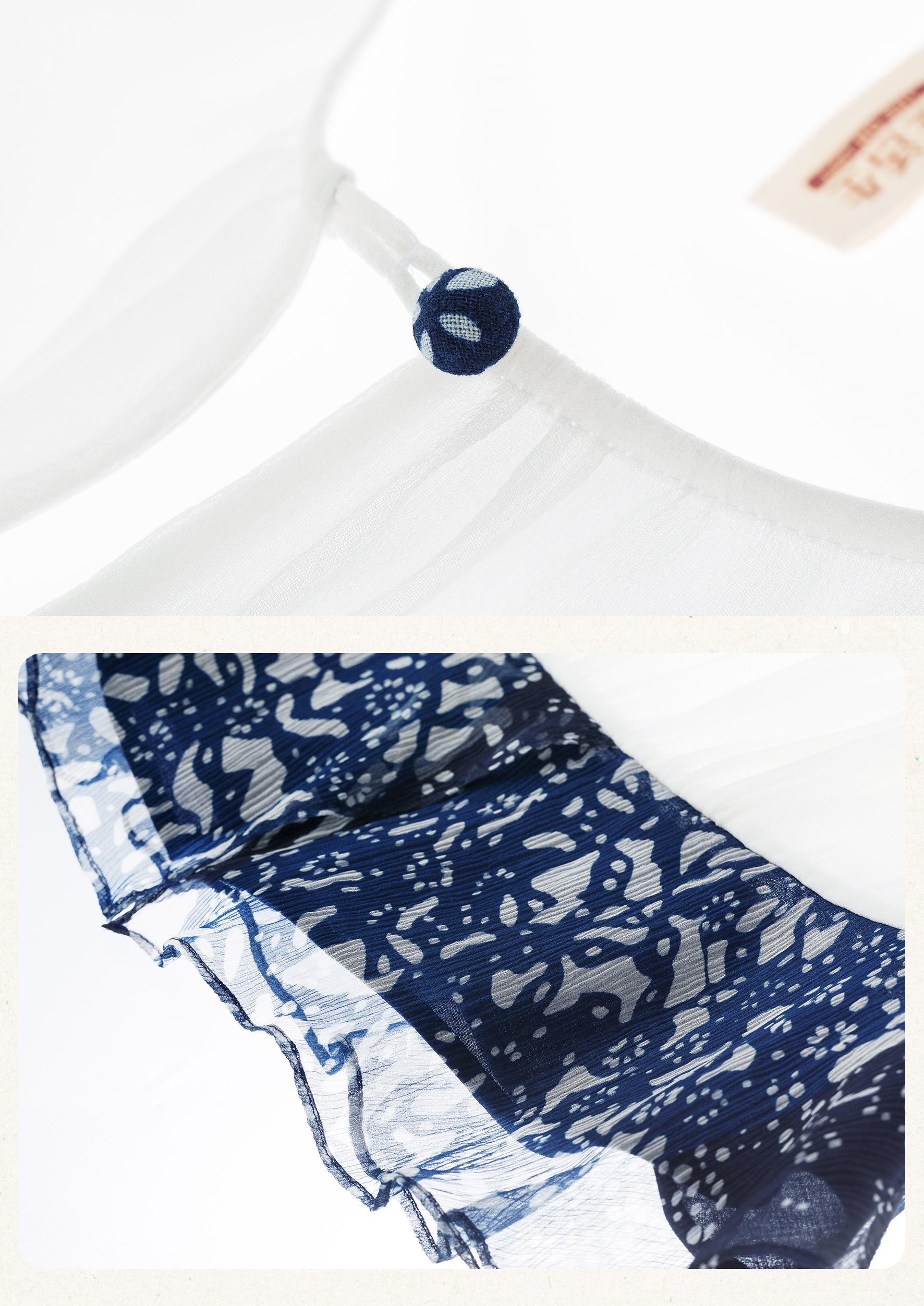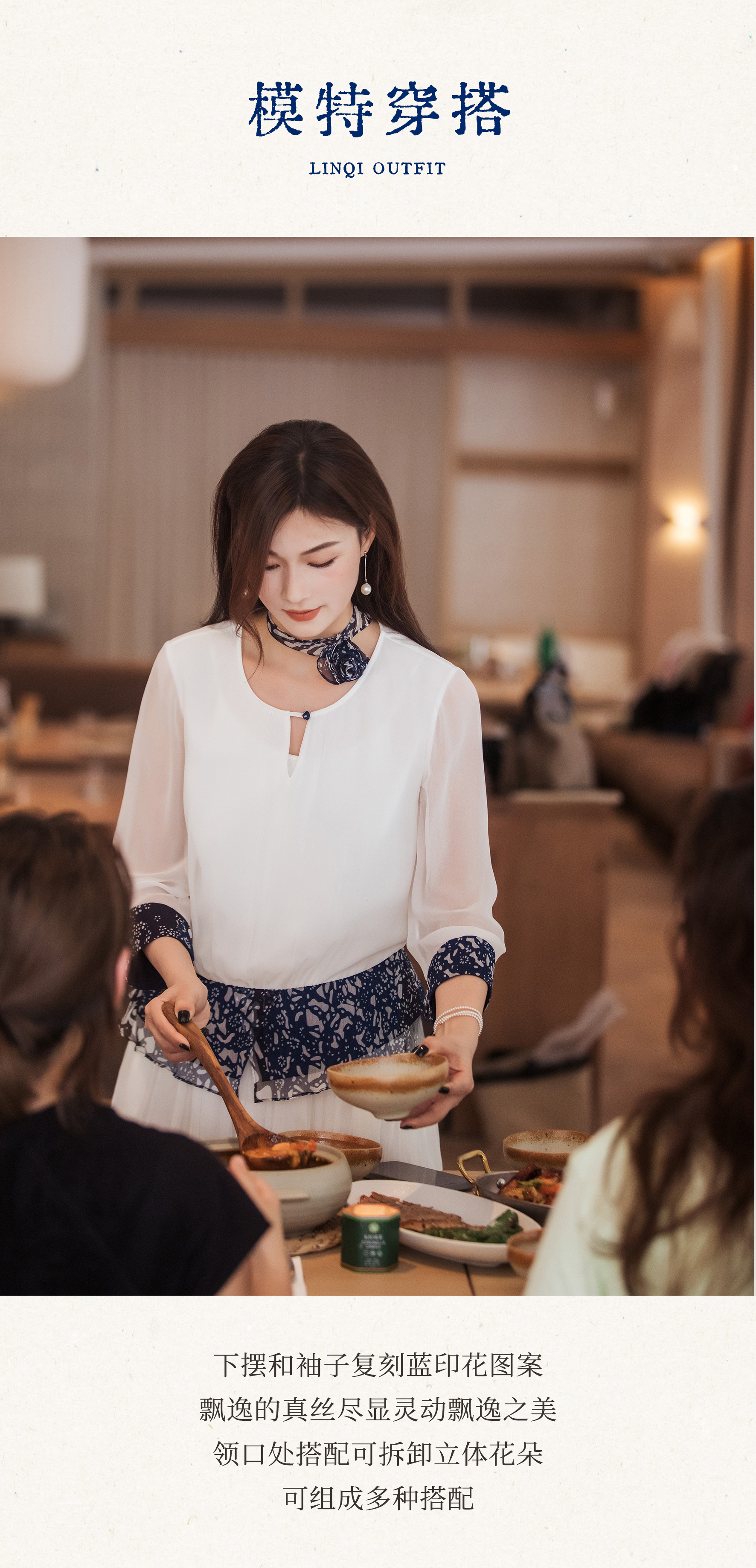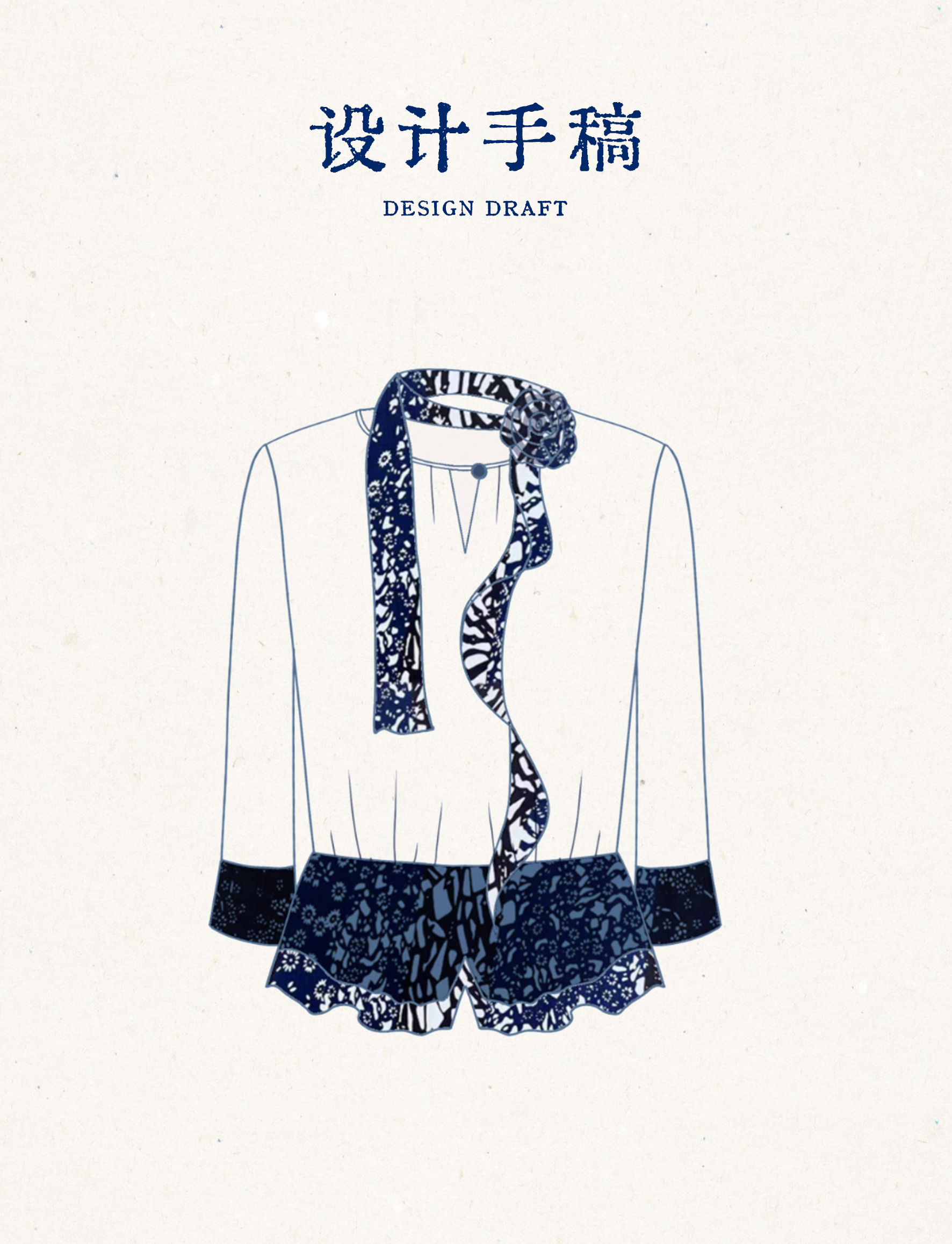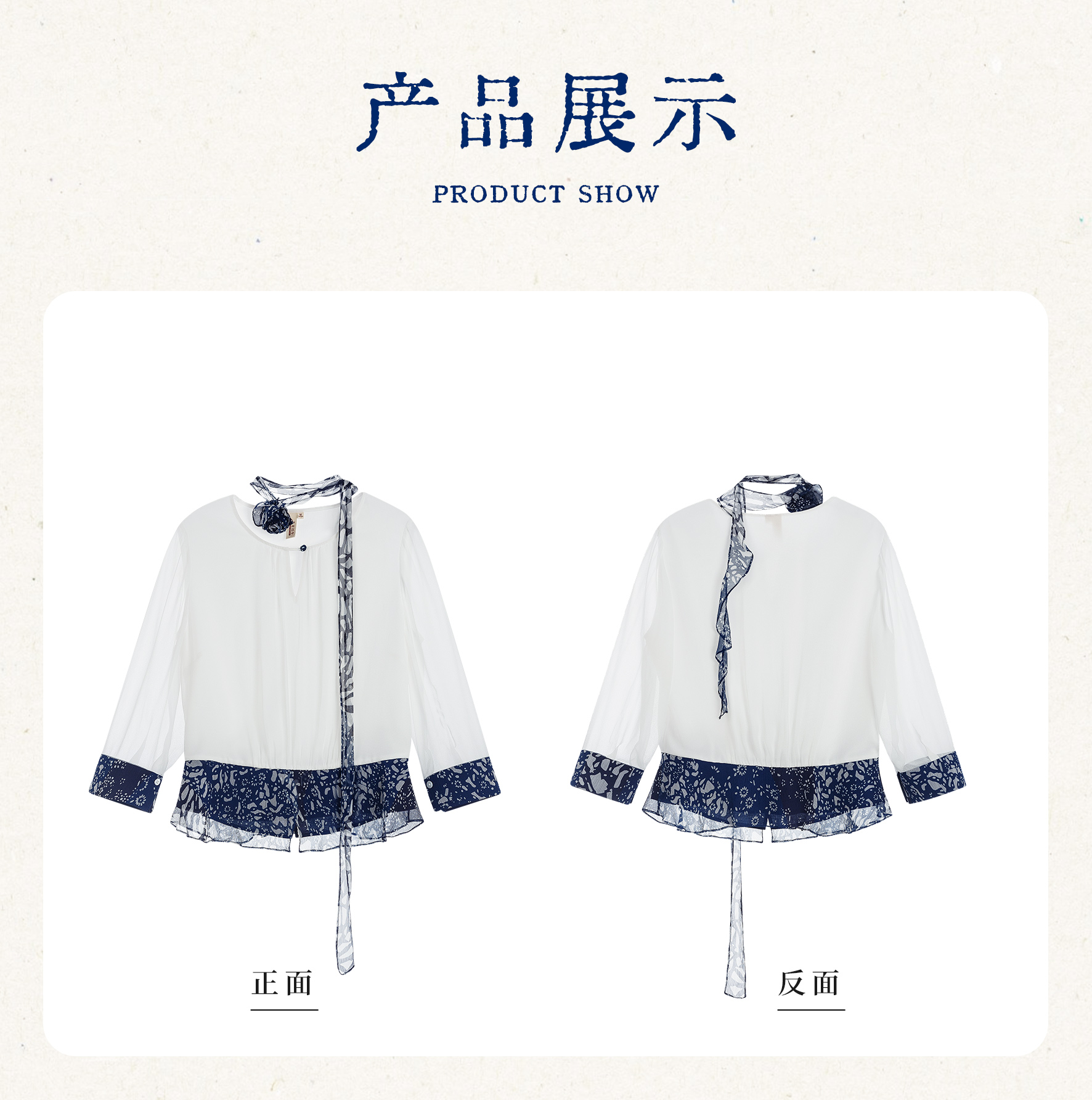 【林栖设计小店】【现货】【林栖推荐】(配送多搭真丝玫瑰胸花)2025年秋季新品白拼蓝印花真丝上衣N1953293