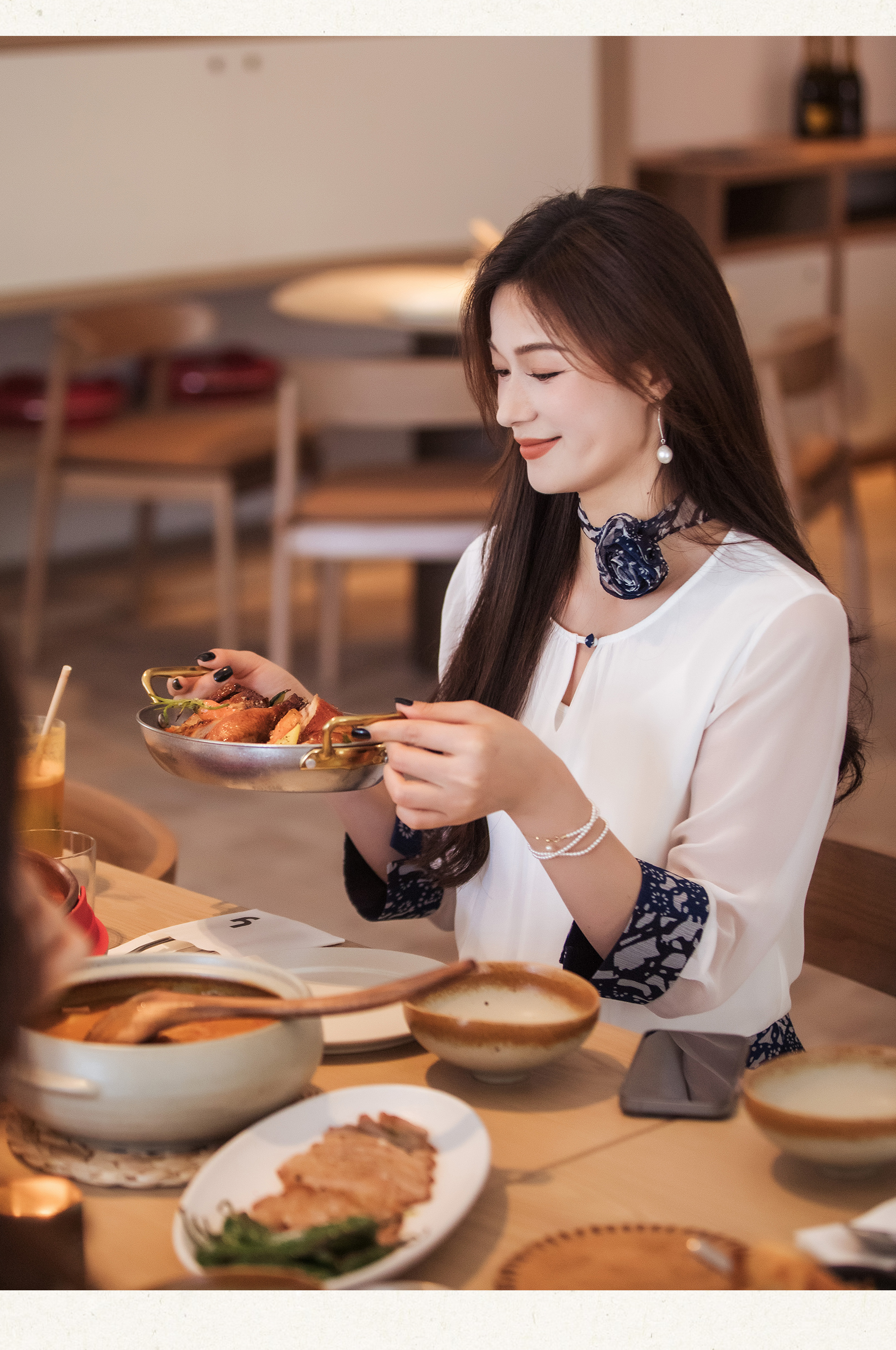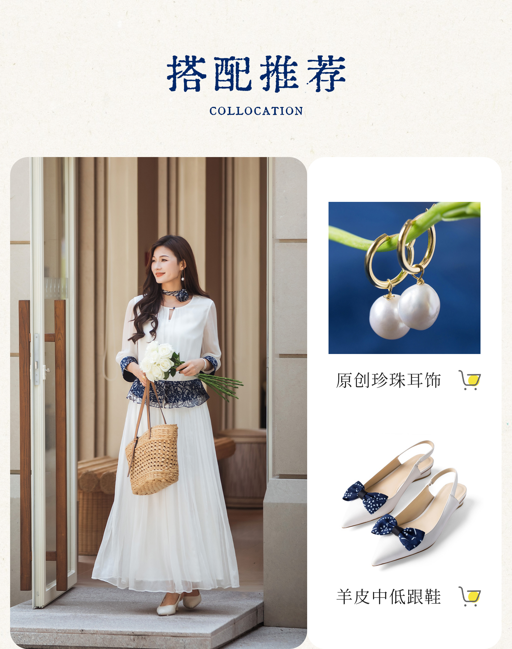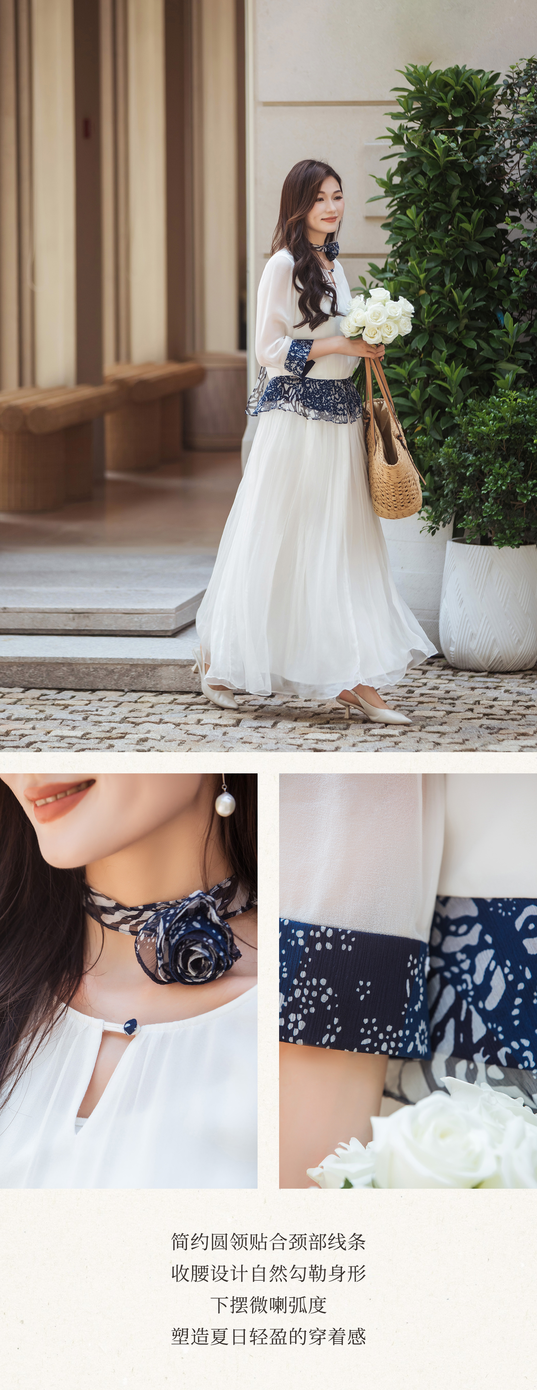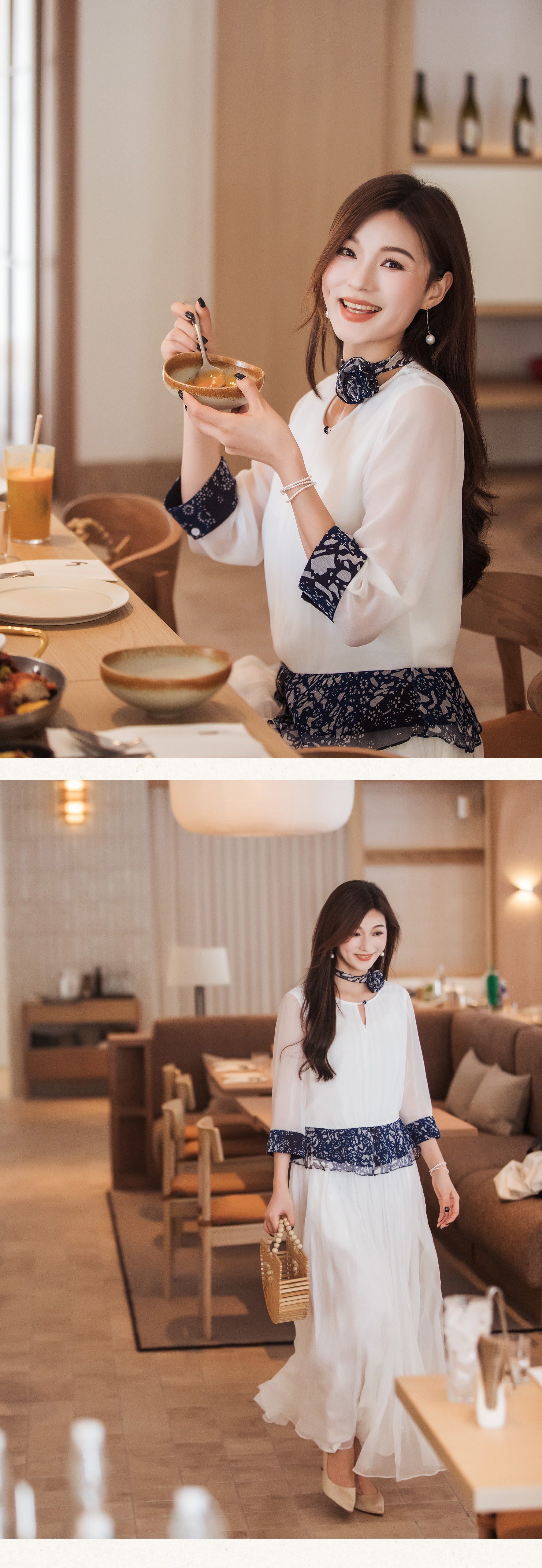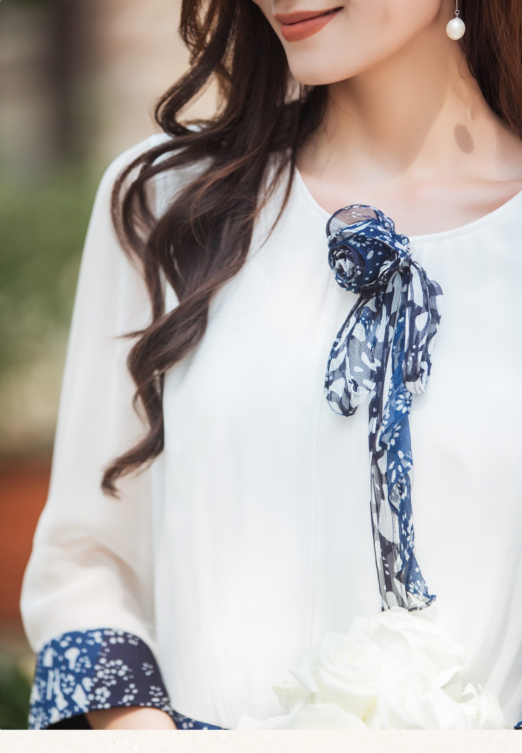 【林栖设计小店】【现货】【林栖推荐】(配送多搭真丝玫瑰胸花)2025年秋季新品白拼蓝印花真丝上衣N1953293