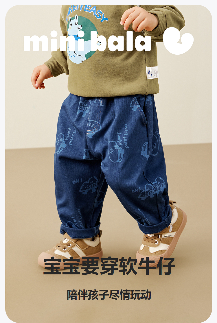 【软牛仔】迷你巴拉男女童裤子冬季宝宝萝卜裤百搭长裤