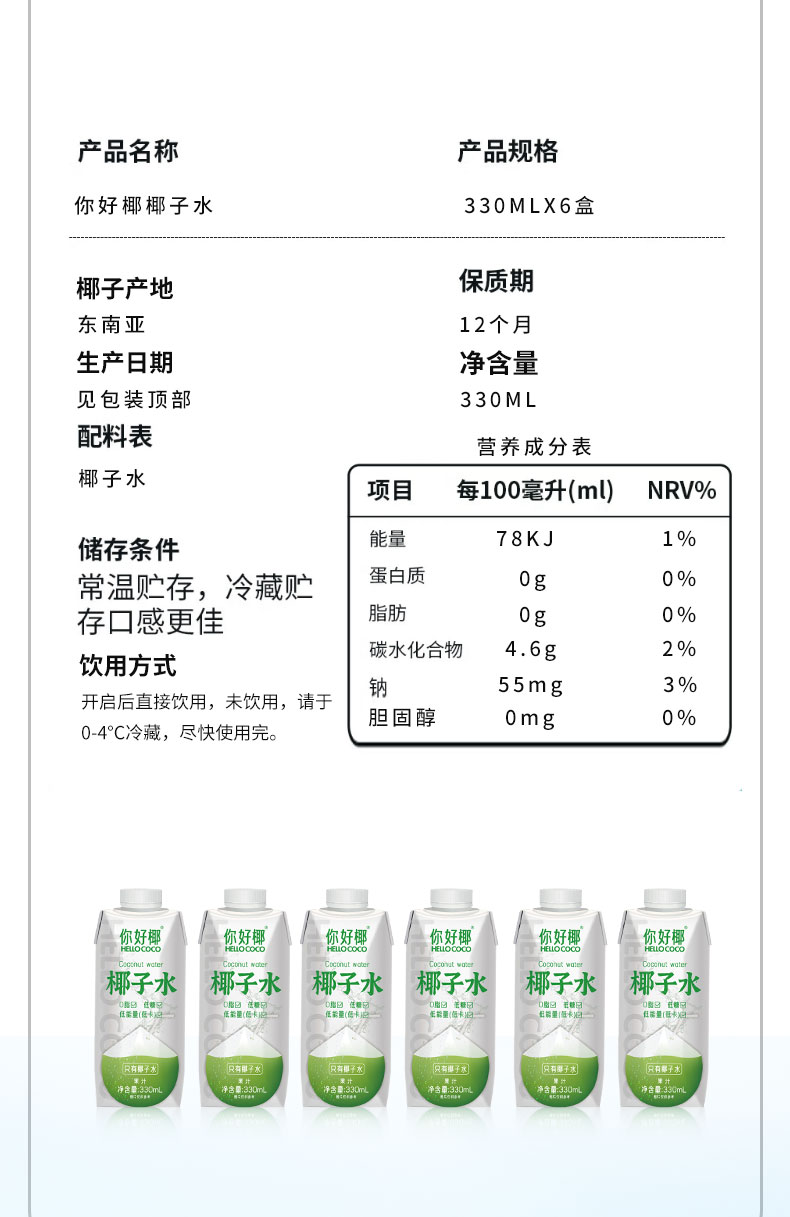 自然原味·你好椰椰子水 2小时灌装 不添加只有椰子水