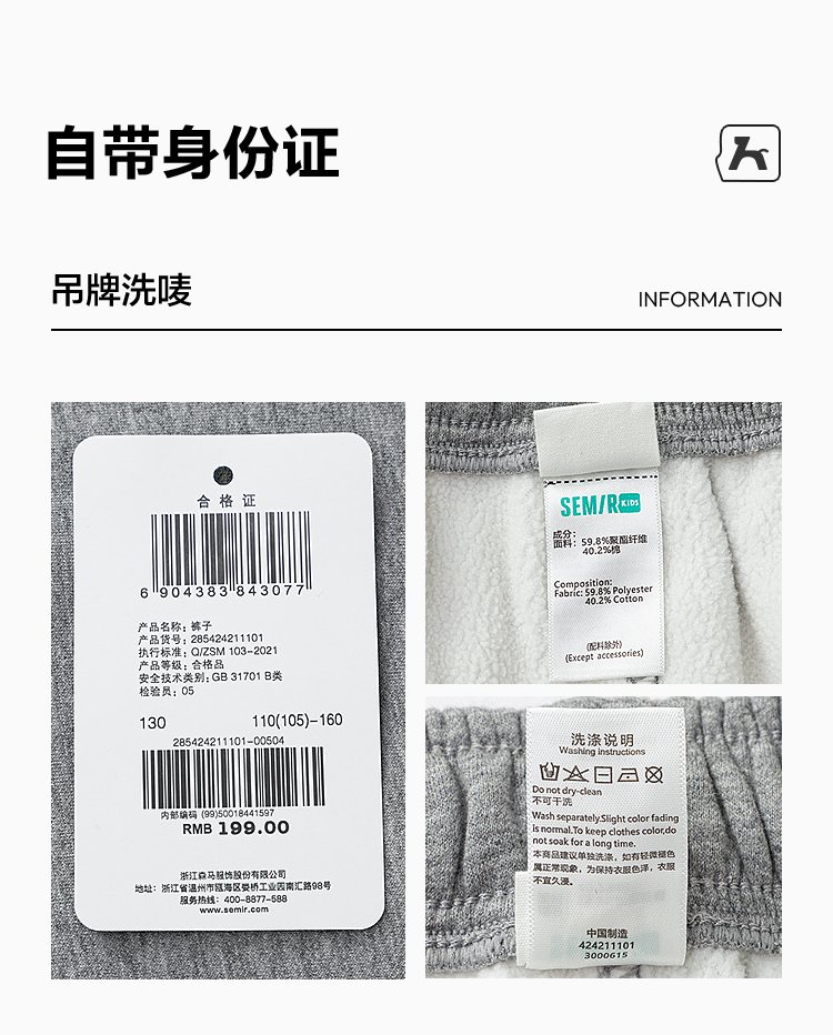 森马儿童长裤2024新款加绒宽松束脚裤冬季针织裤男童裤子简约休闲