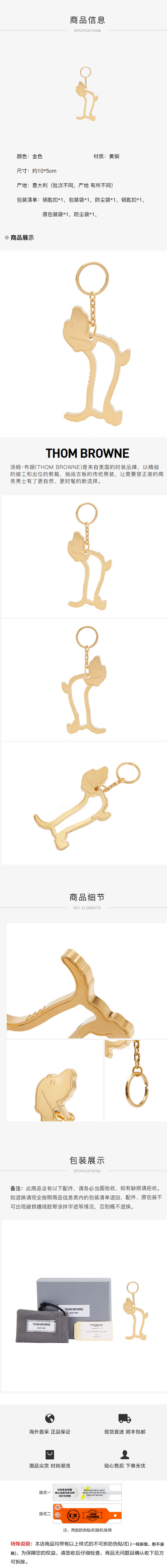 THOM BROWNE 汤姆布朗 情侣款狗狗造型钥匙扣 七夕礼物 金色 MZK046A 01763 715