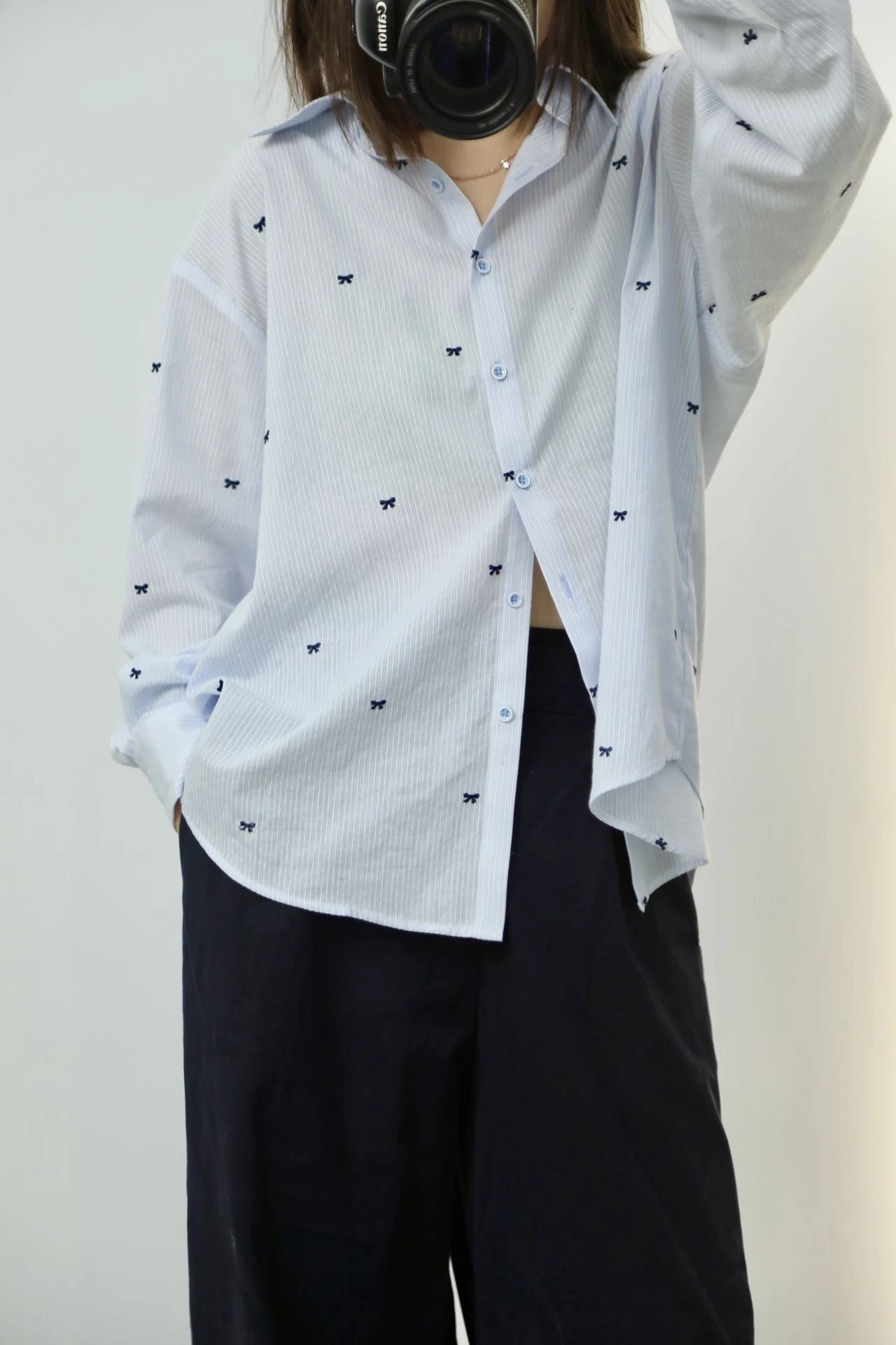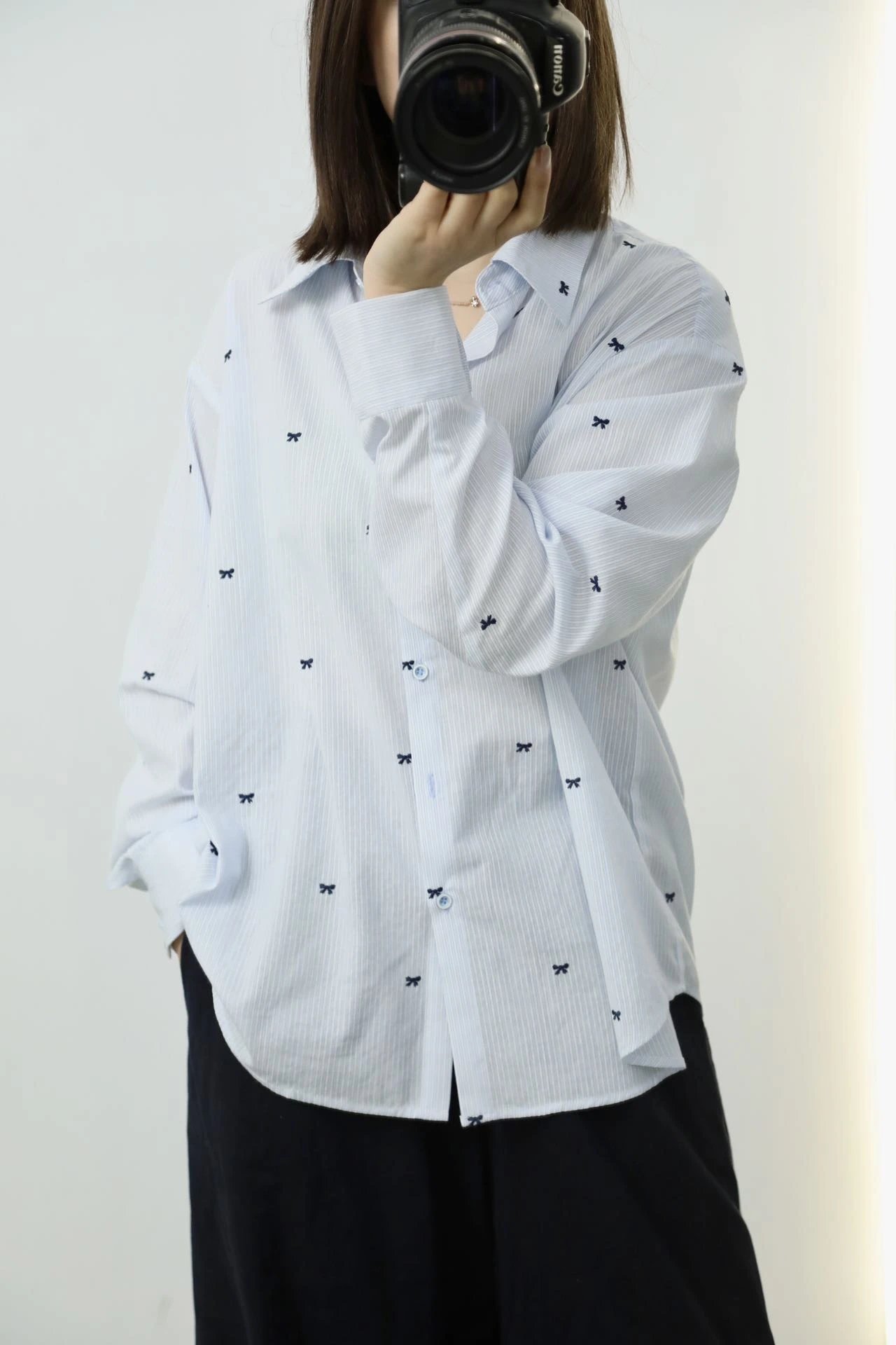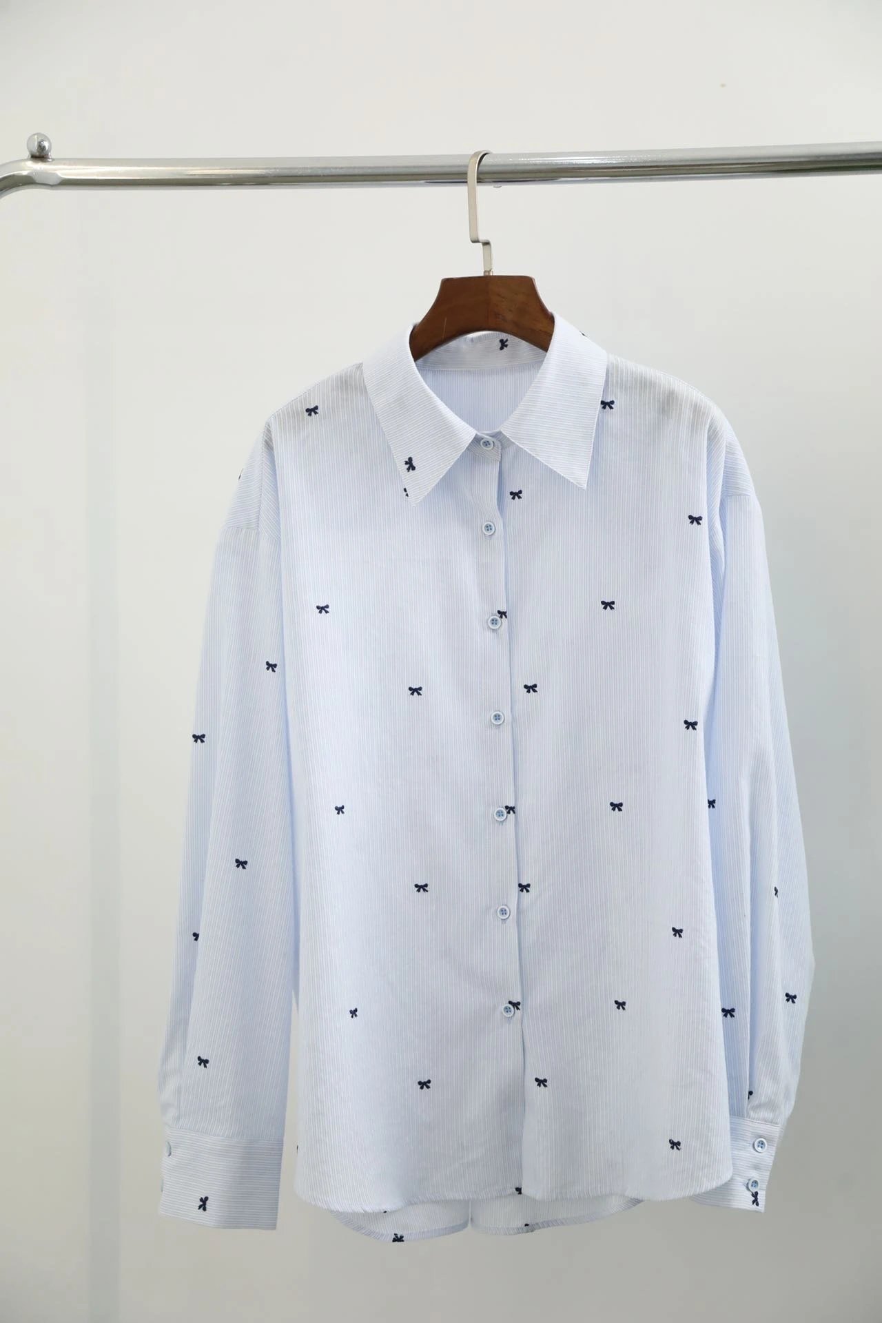 就这件自带精致刺绣蝴蝶结的韩系衬衫