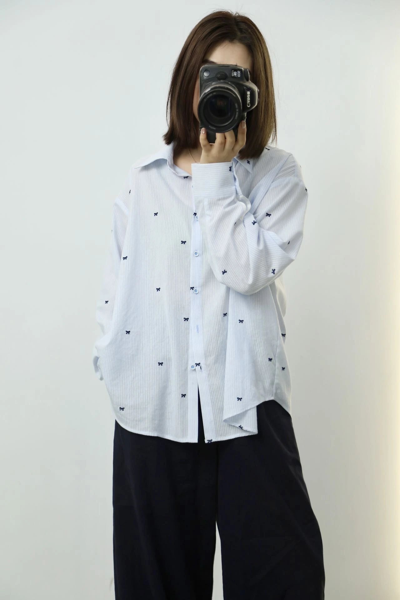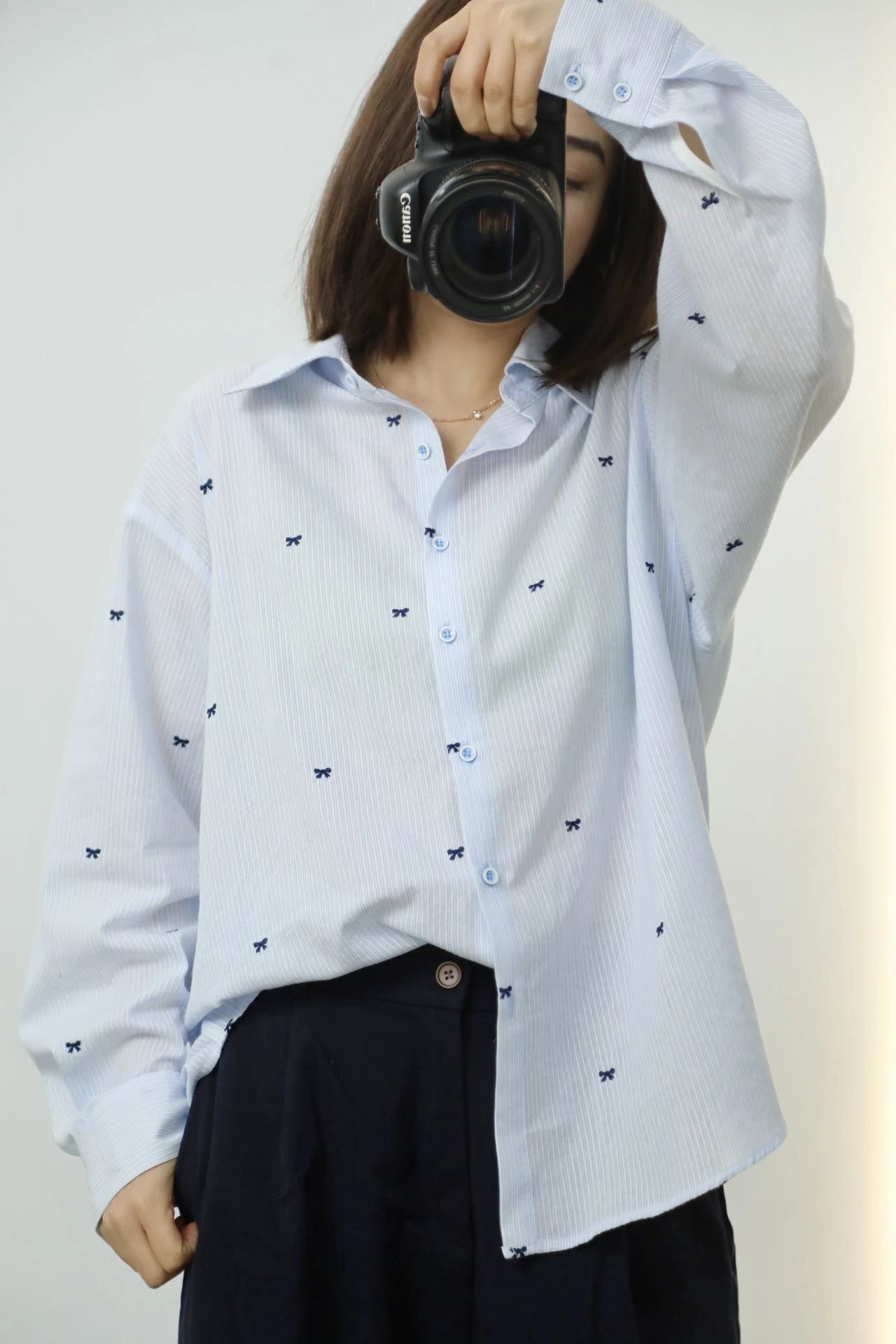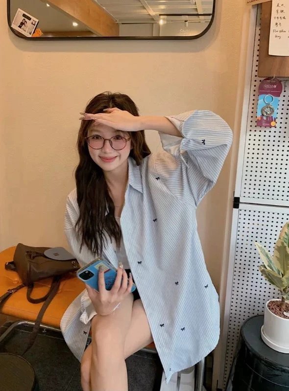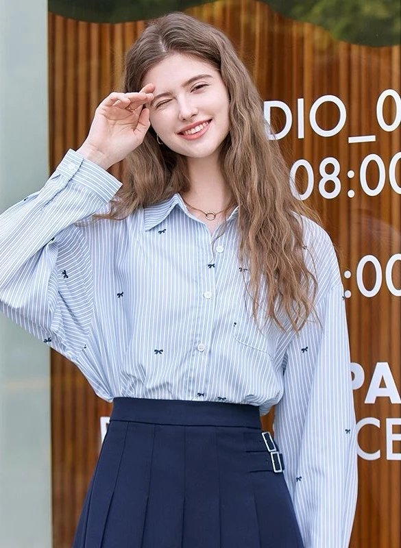 就这件自带精致刺绣蝴蝶结的韩系衬衫