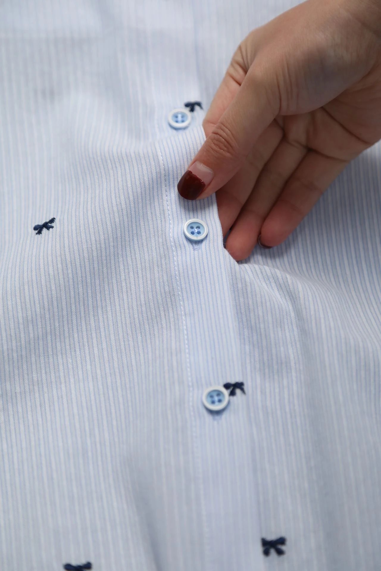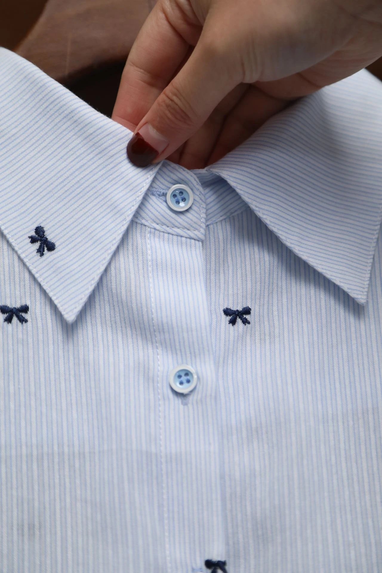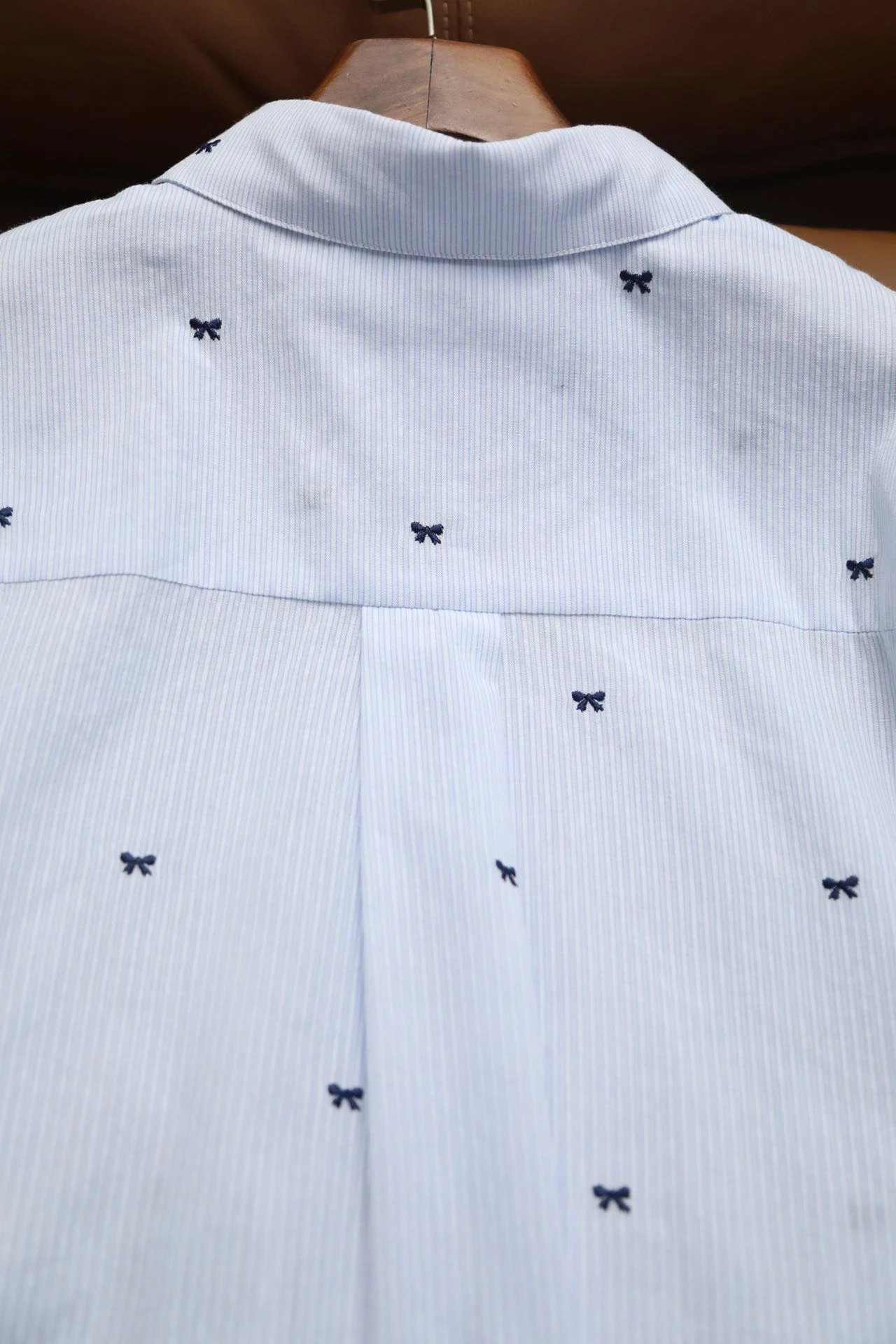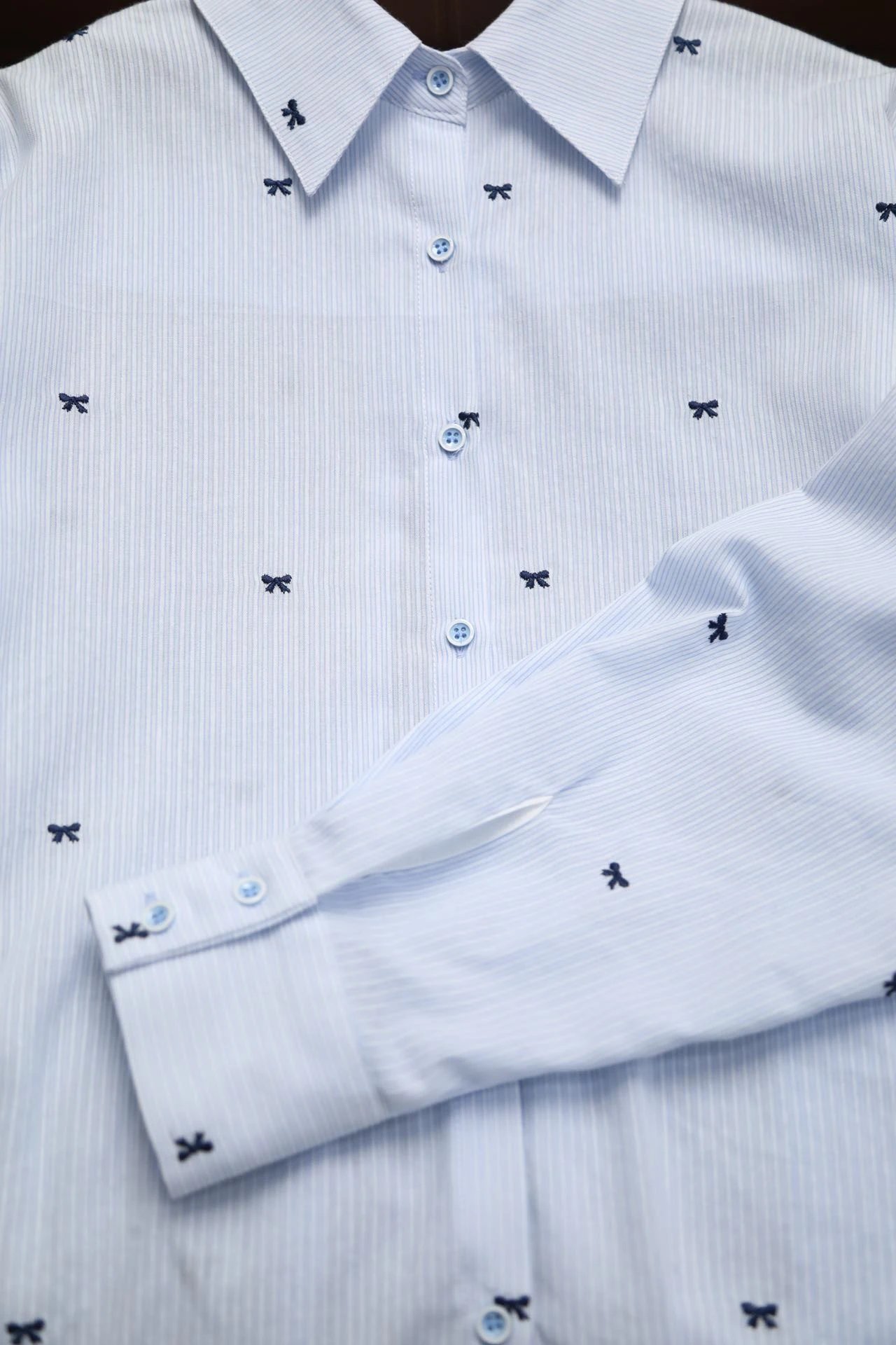 衬衫上精致的每一个小小的刺绣蝴蝶结