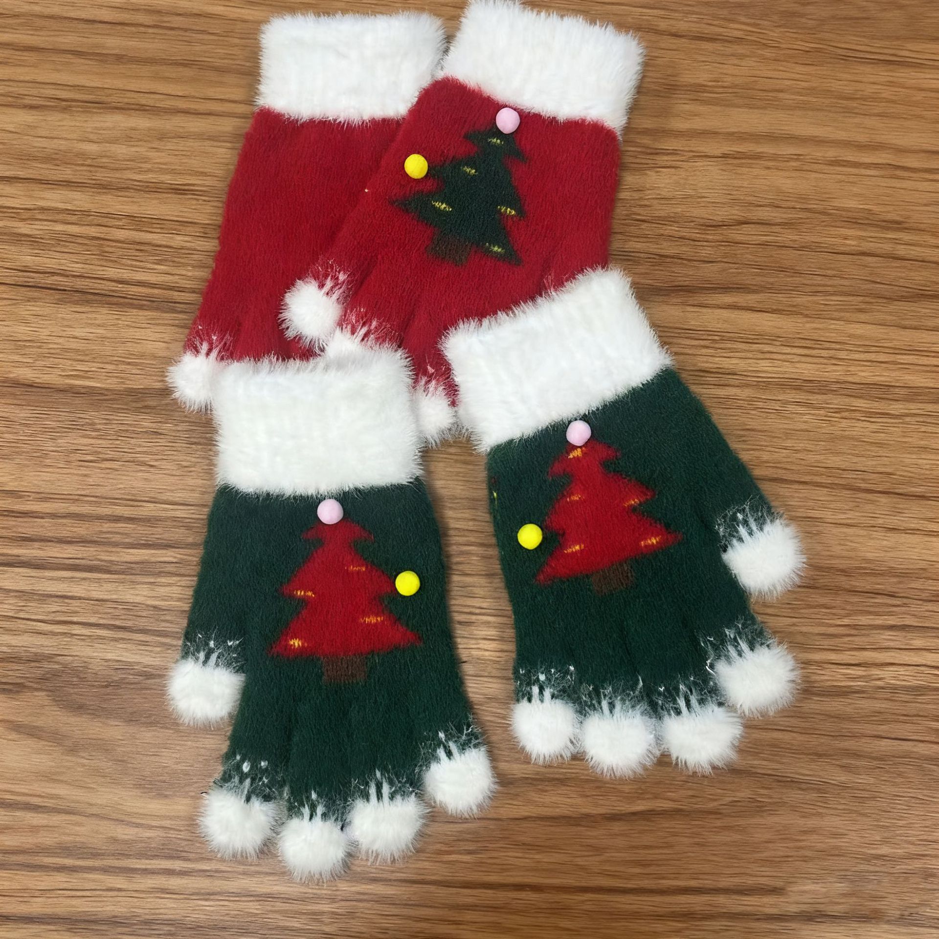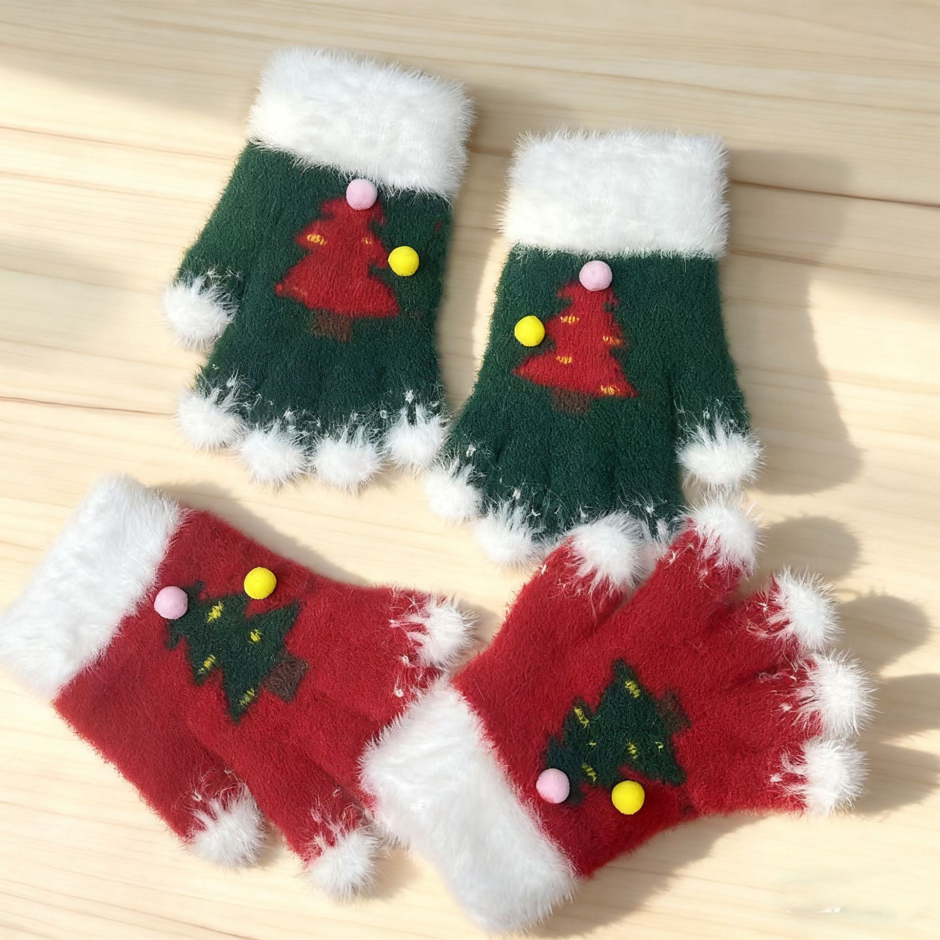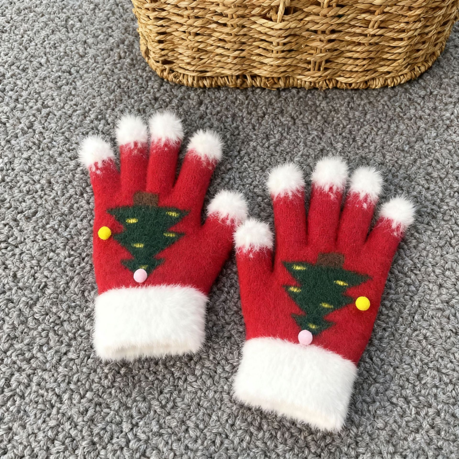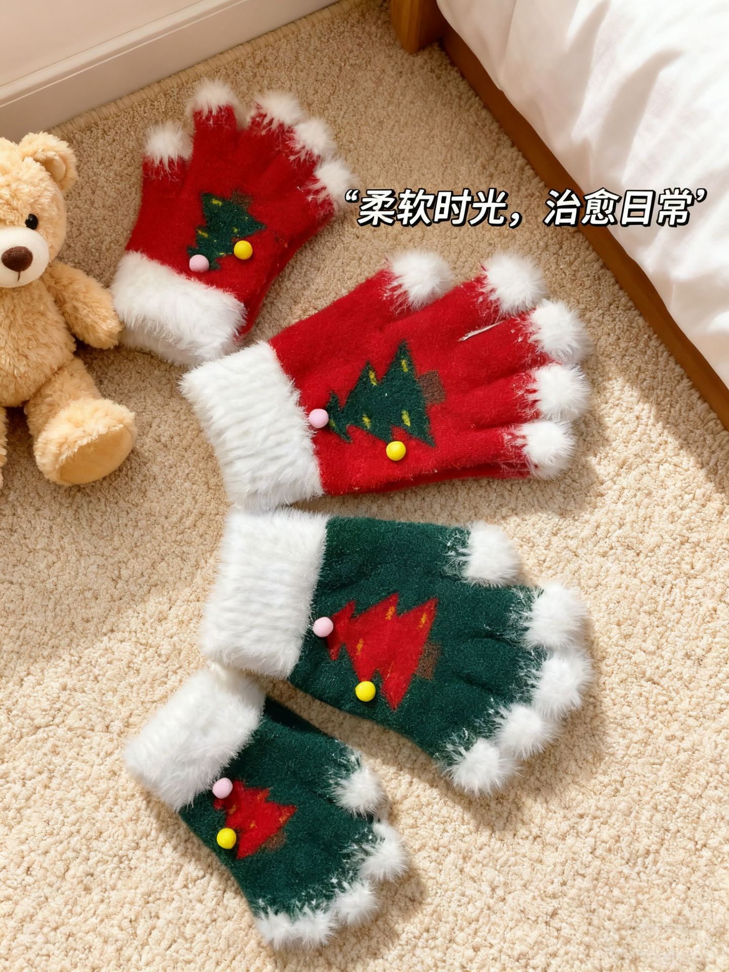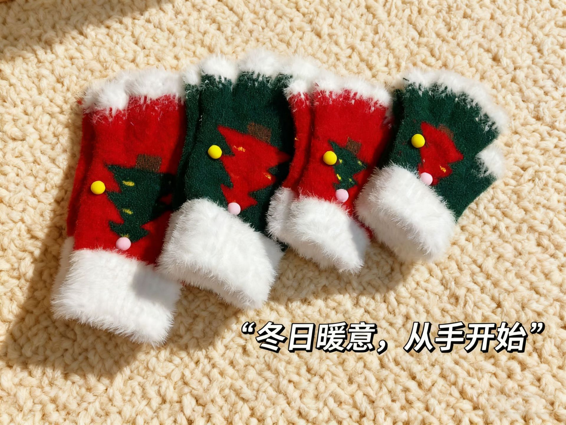 敲好看【冬日暖意!从手开始】新款圣诞手套成人儿童防寒针织可爱圣诞树五指分指手套户外保暖学生手套秋冬季。rd