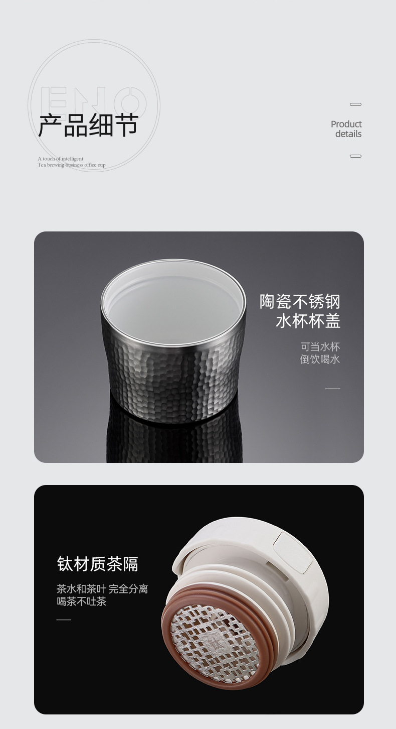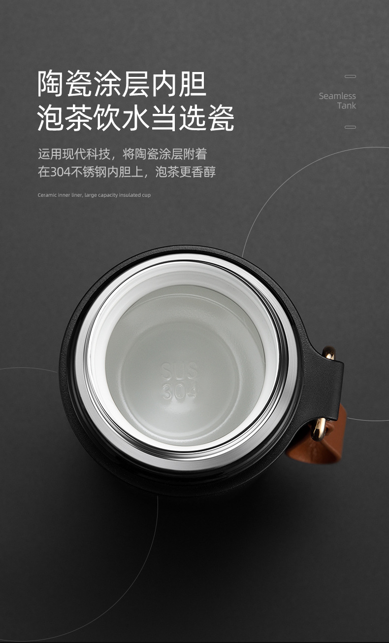 【大牌品质】陶瓷内胆保温杯304不锈钢茶水分离焖茶杯锤纹养生泡茶杯