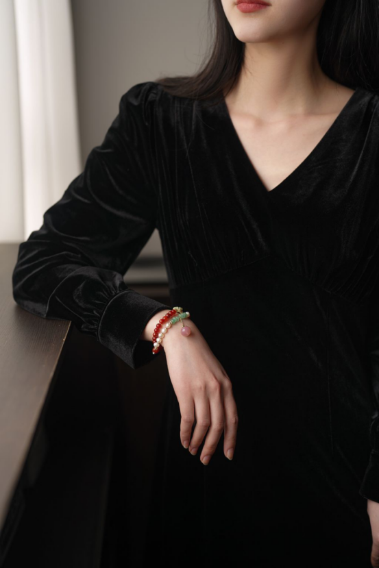 这是加长款,可以三层叠戴手腕上 颜值和美好寓意,双重加持 谁戴谁好看~