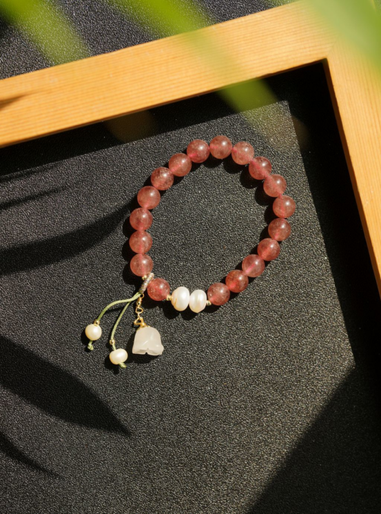 草莓晶粉嫩通透,女性佩戴能够提升气色