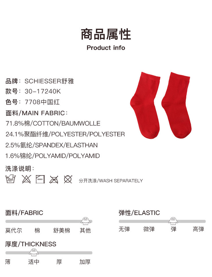 【年年有余鸿运袜】SCHIESSER/舒雅女士本命年鸿运红中筒袜子30/17240K
