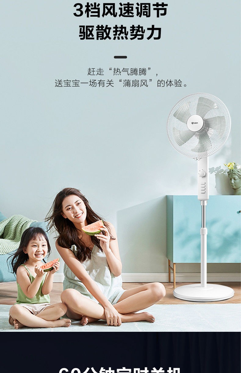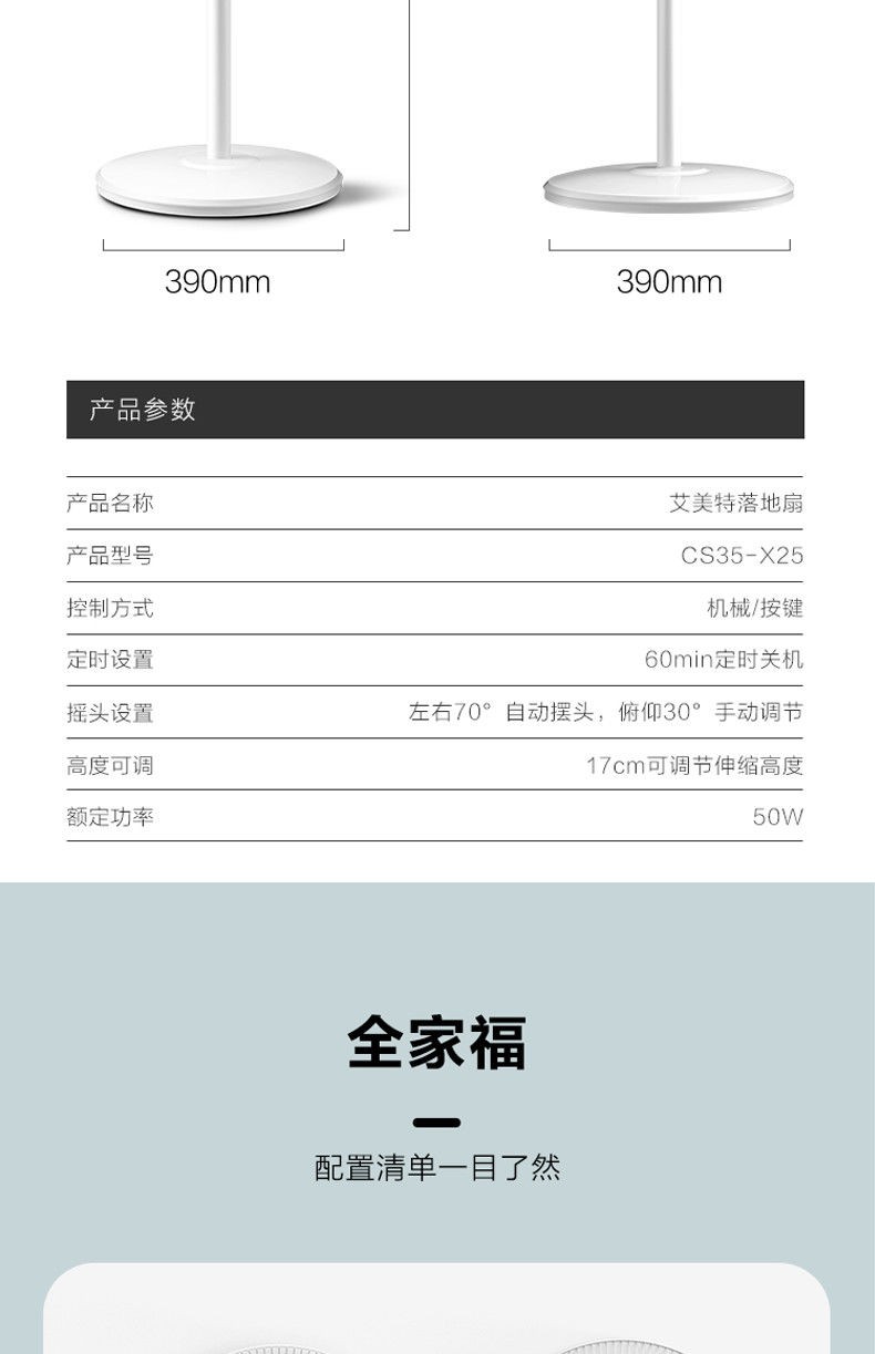艾美特(Airmate)电风扇 落地扇 家用五叶 机械 大风力风扇 宿舍立式 定时 摇头电扇 CS35-X25