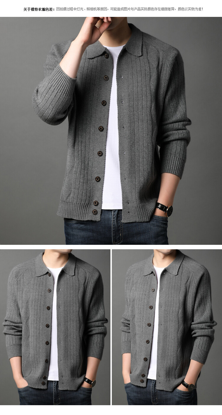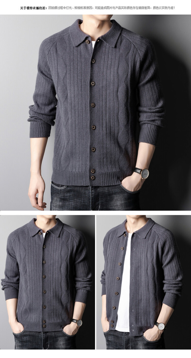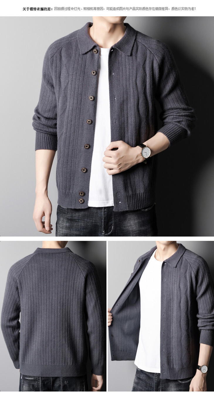 男士春秋季开衫 新款休闲男装翻领百搭针织衫简约潮流毛衣外套