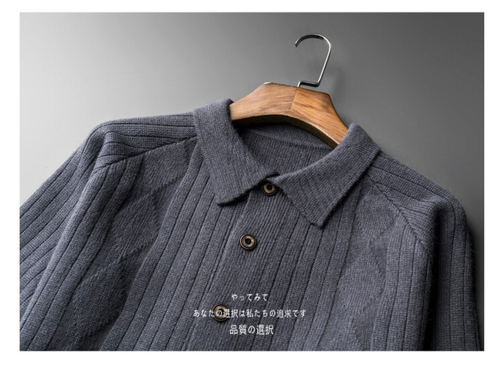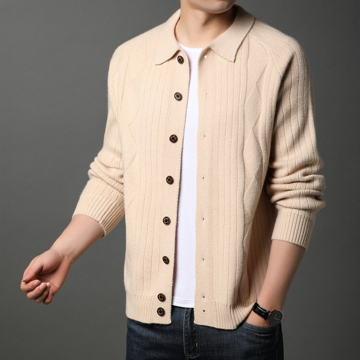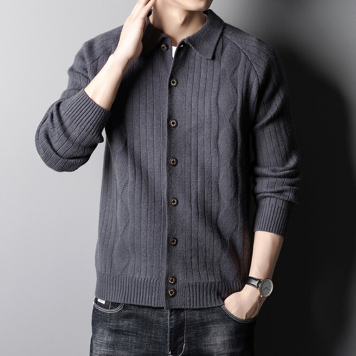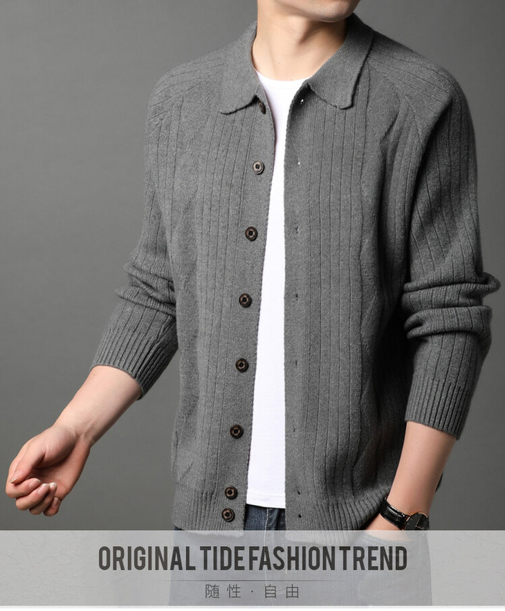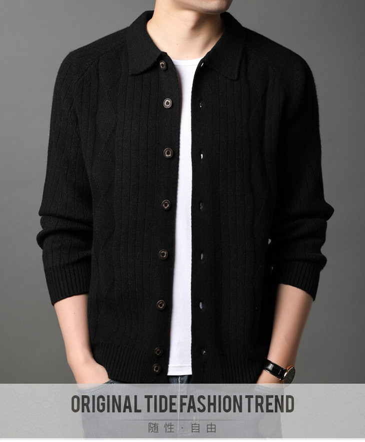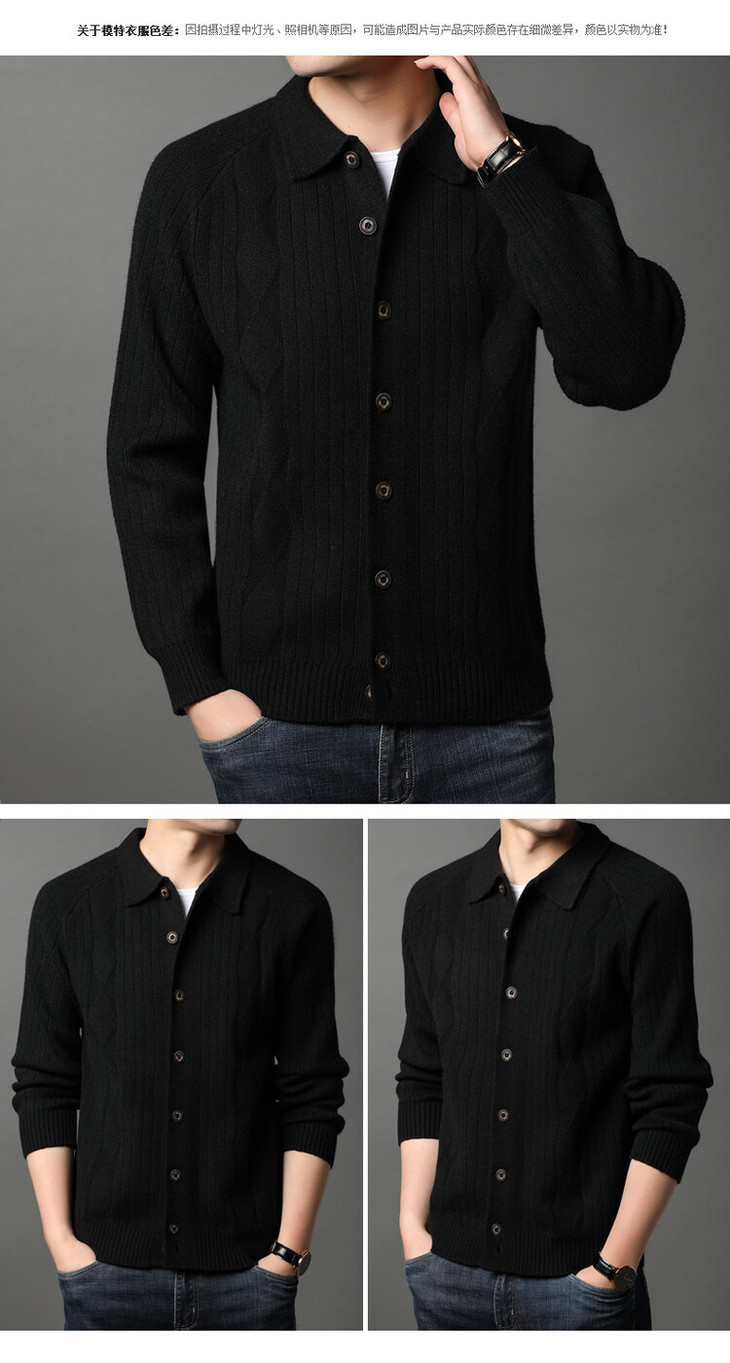 男士春秋季开衫 新款休闲男装翻领百搭针织衫简约潮流毛衣外套