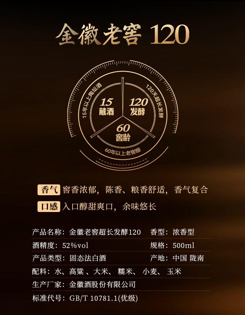 金徽酒 52度金徽老窖超长发酵120 浓香型白酒