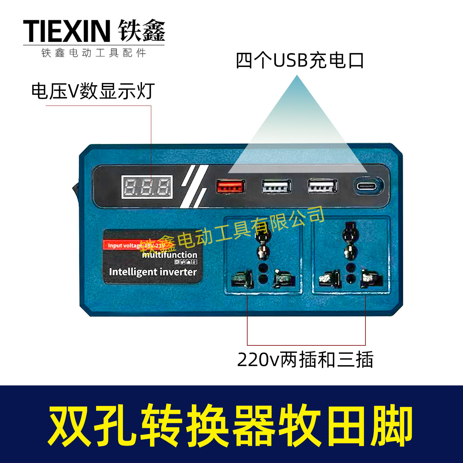 【货号07661】双插口锂电池转换器牧田脚直流转交流220V智能逆变器户外锂电池变压器