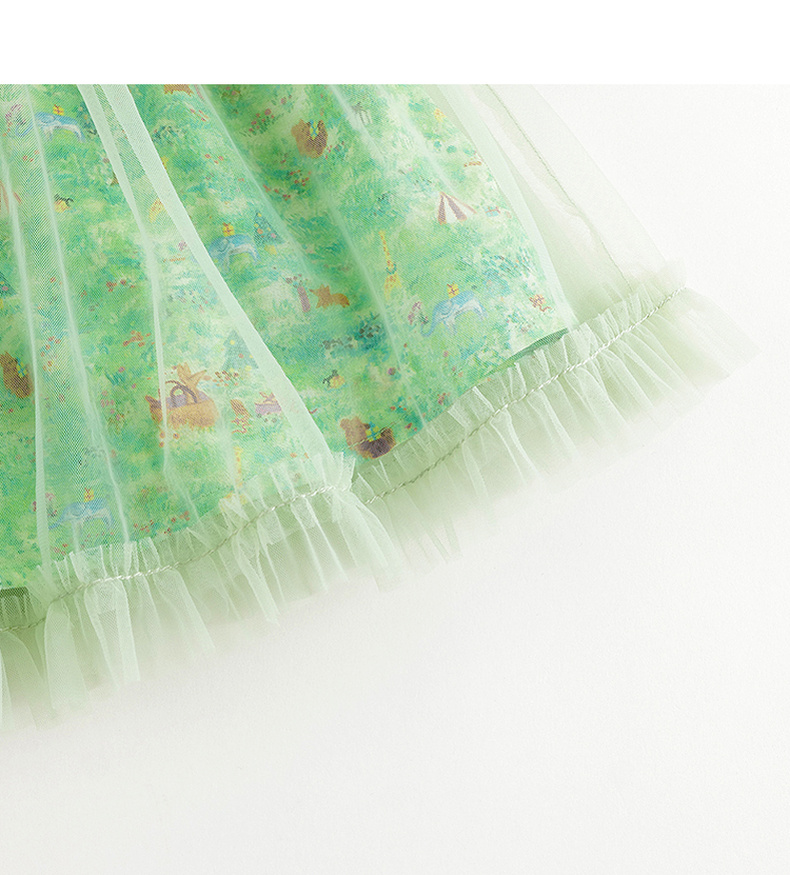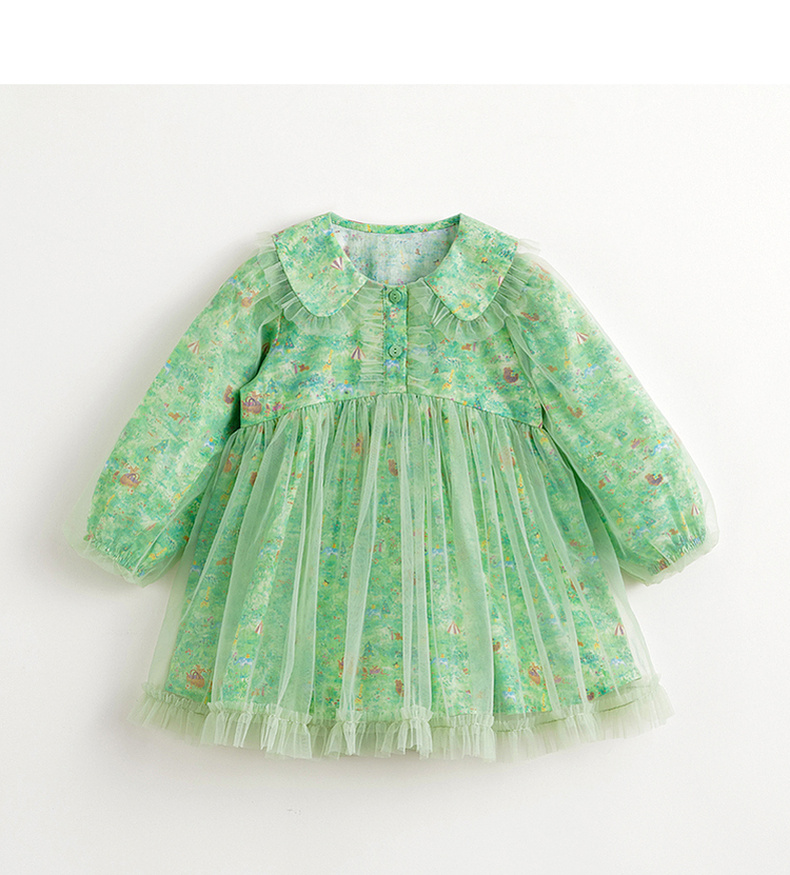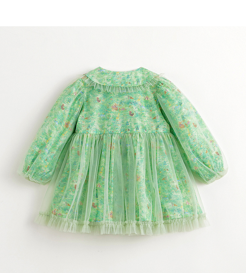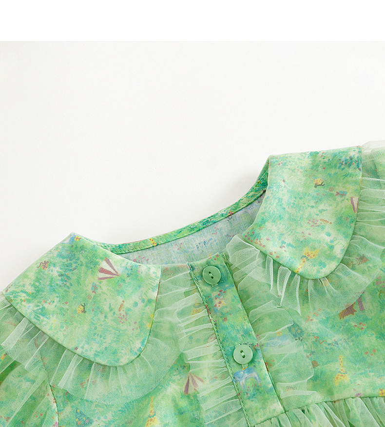 马克珍妮女童娃娃领春日满印网纱连衣裙 儿童裙子春装新款240316