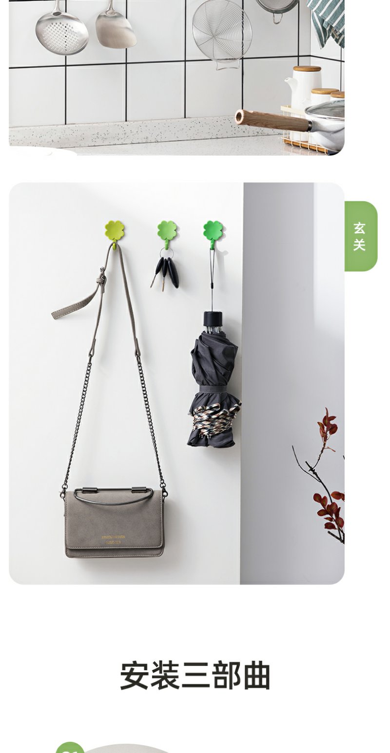【茶花】多款式粘钩组合四叶草小清新粘钩