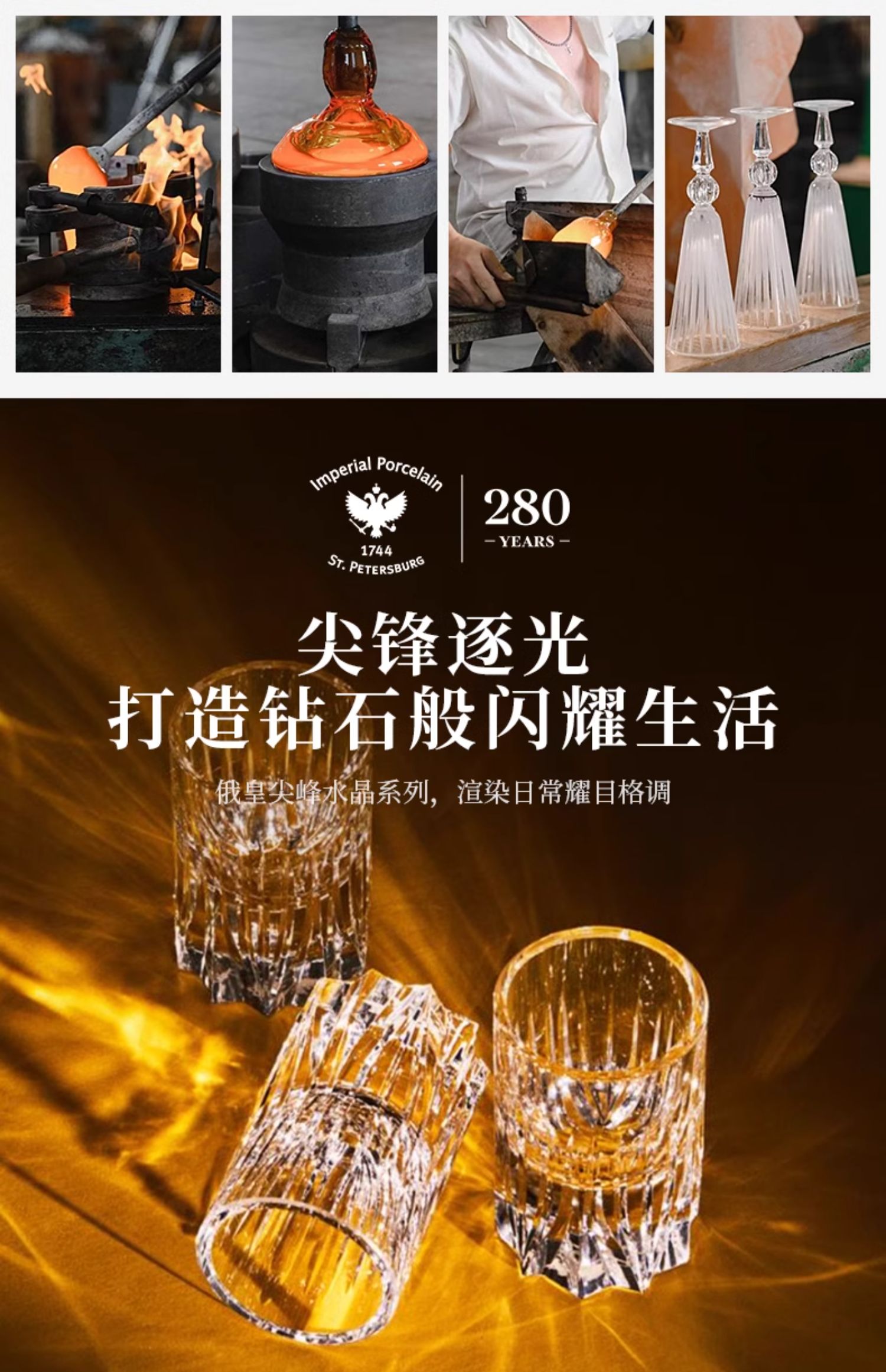 俄皇水晶尖峰系列手工白酒杯分酒器二人套装