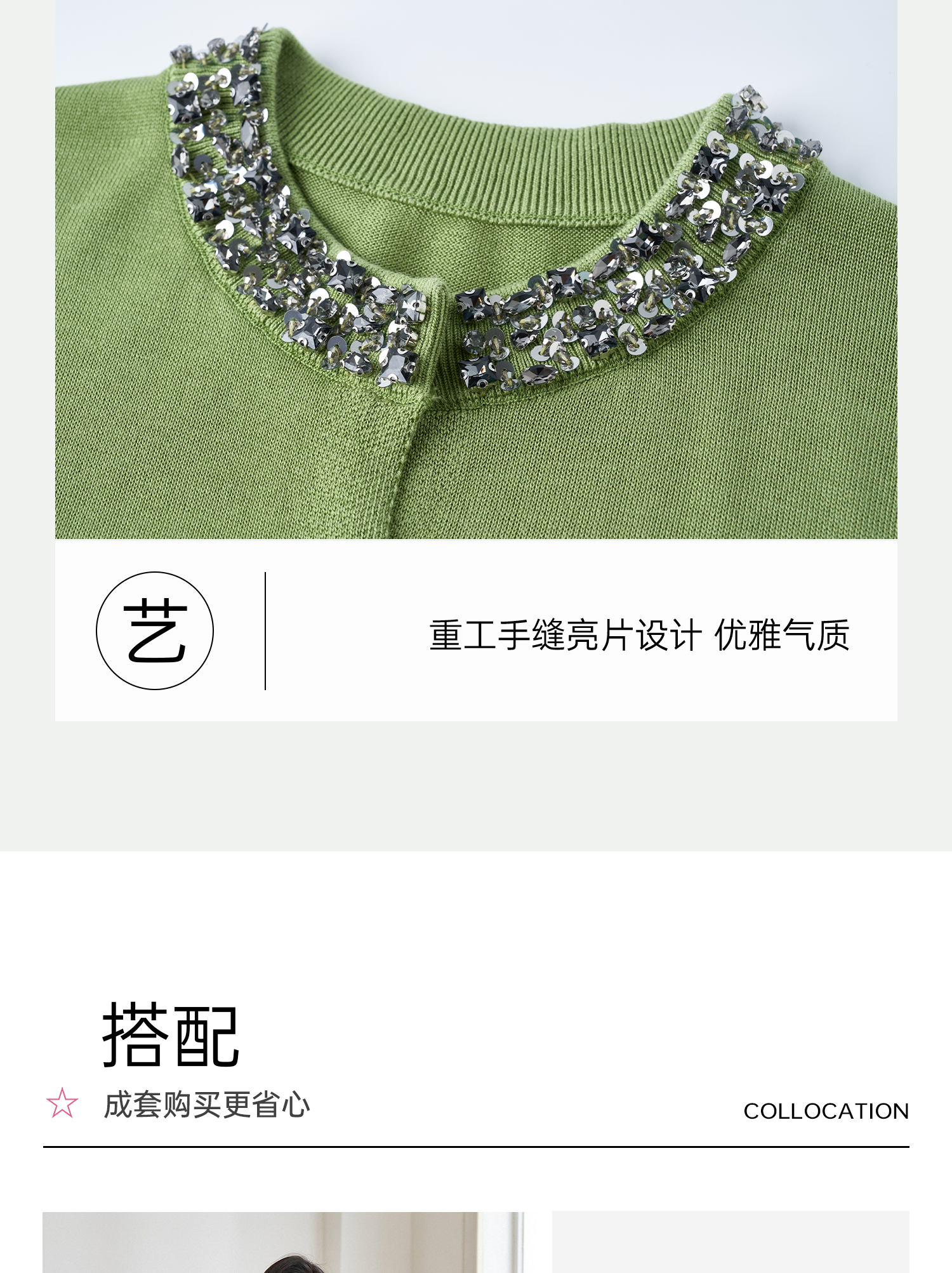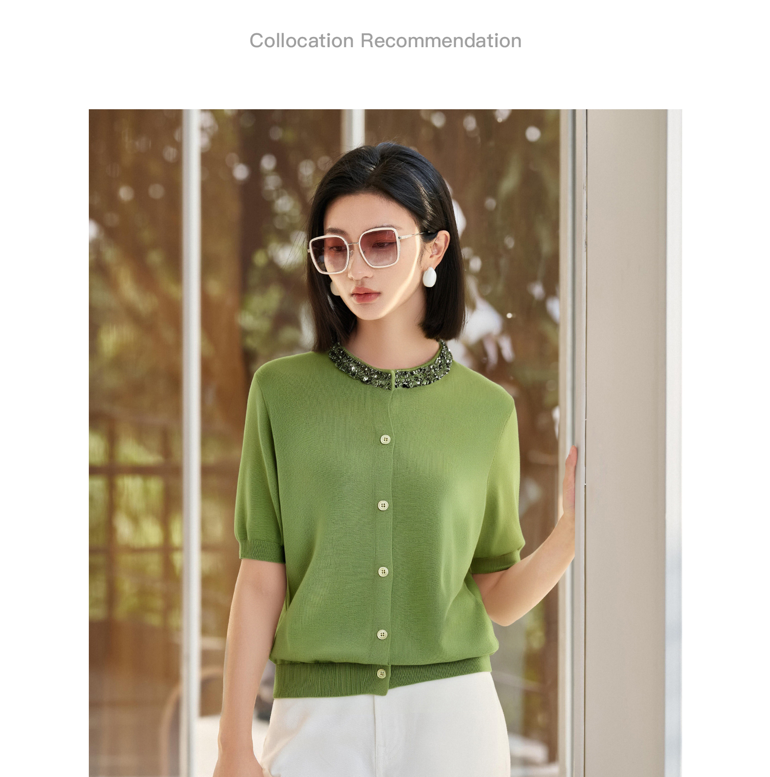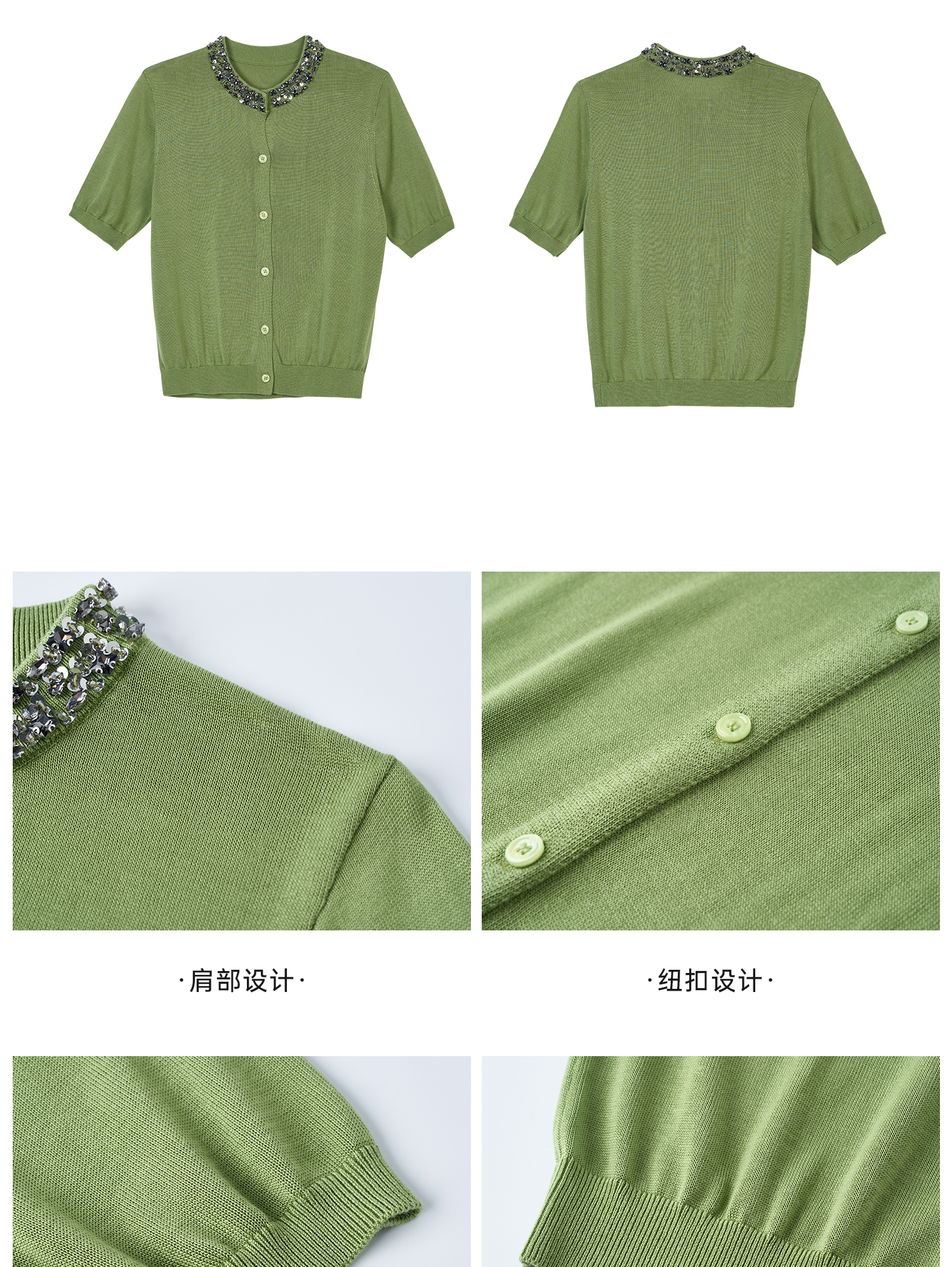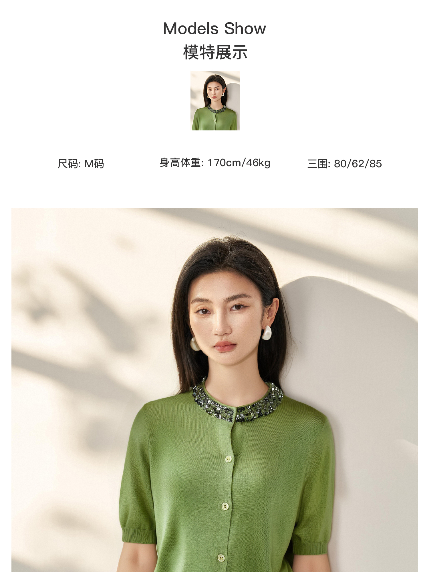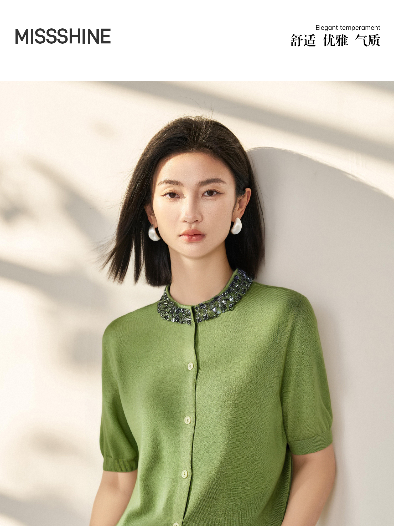 【预售7天】米思阳2026夏季新款法式小香风针织衫设计感钻饰珠片韩系百搭上衣1254/1270
