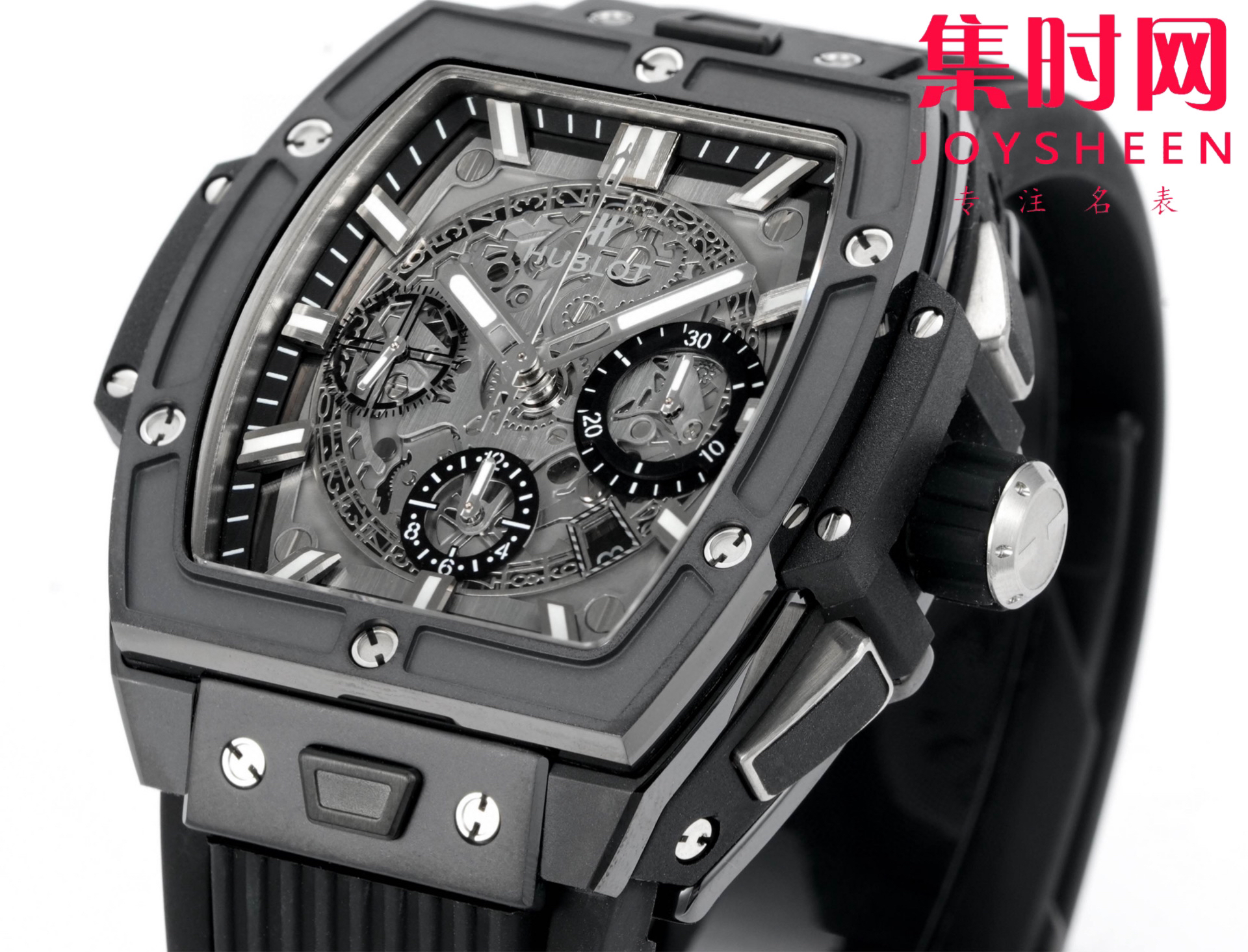 MS彩色陶瓷 灵魂酒桶型 宇舶 -全新彩色“陶瓷工艺” 灵魂BIG BANG系列 男士腕表 以赛车为灵感,推出全新Spirit of Big Bang!腕表结合Spirit of Big Bang系列的所有标志性元素,全新酒桶形全陶瓷表壳。表壳应用钛金属跟树脂材料,借助六枚H型螺丝构建“三明治”结构,传达“融合的技术”的理念,定制HUB4700自动上链机芯,原装折叠表扣,订制氟橡胶表带,腕表配有“一键式”快速更换表带系统,佩戴者只需轻轻一按,即可以轻松快捷地替换表带!!!