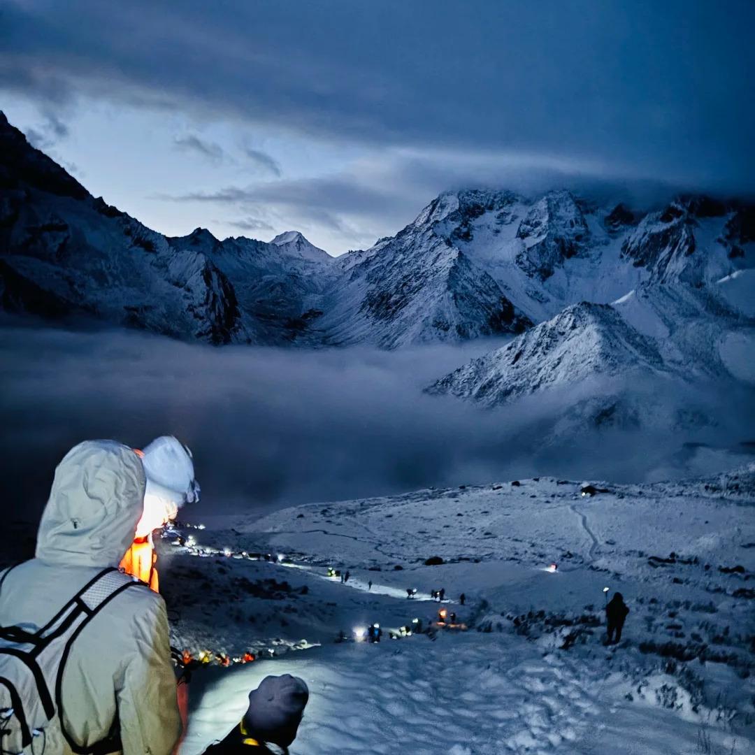 凌晨时分,天还未亮,我们便起床收拾行李和装备,乘坐中转车前往奥太娜BC大本营。往车窗外望去,高原的夜空干净得没有一丝杂质,星星仿佛触手可及