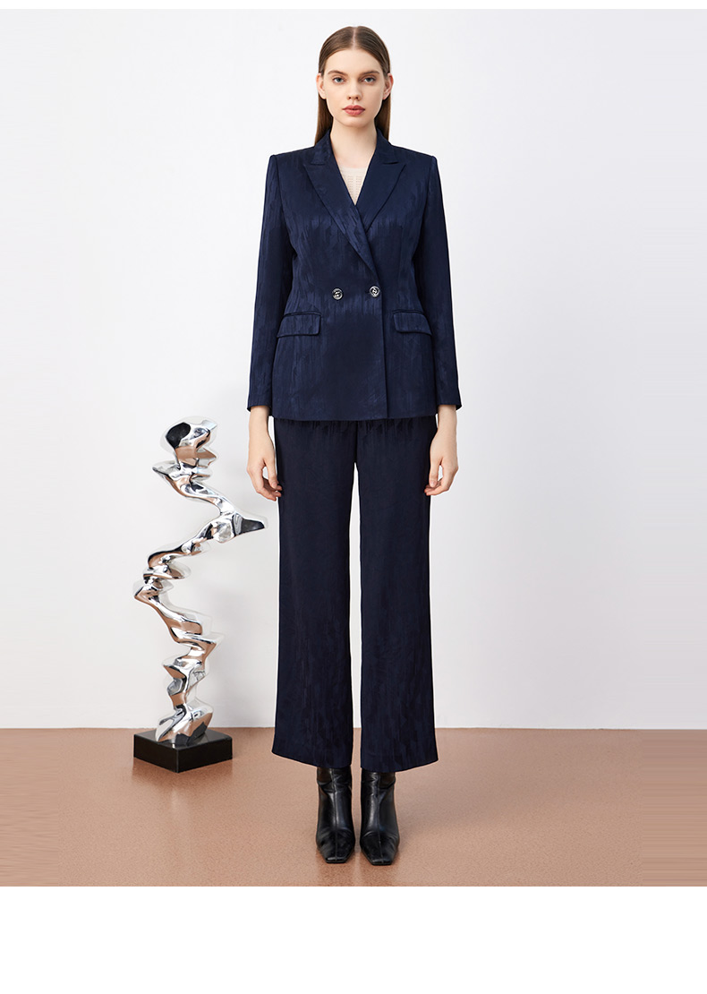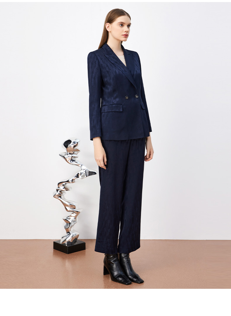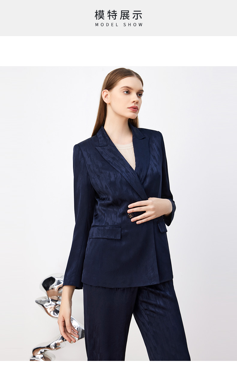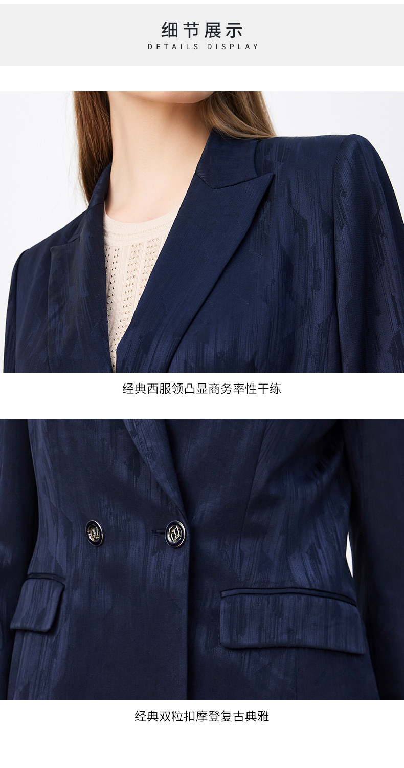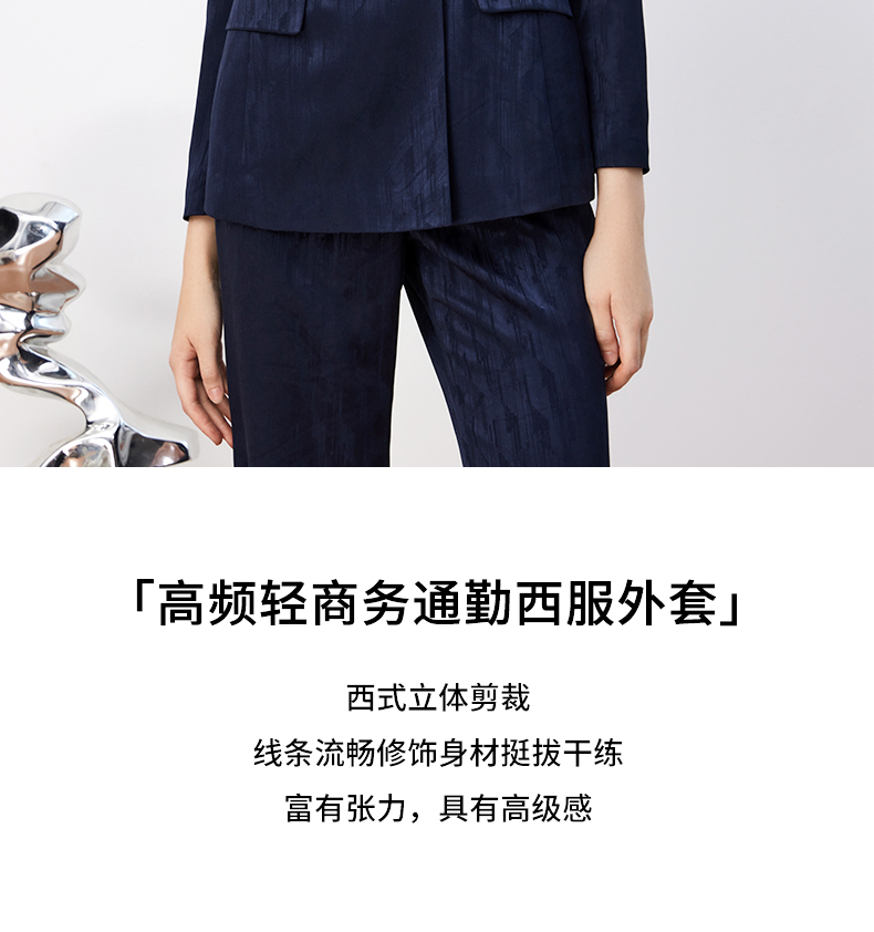 皮尔卡丹女装轻商务高频暗纹印花通勤两粒扣西服P3339U3980N0