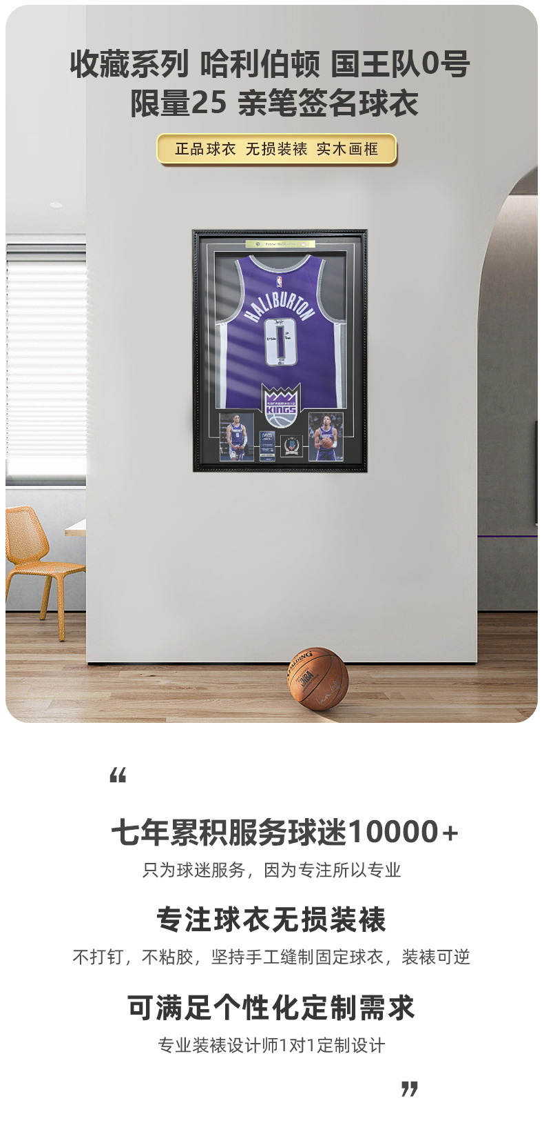 收藏系列 哈利伯顿 国王队0号 限量25 亲笔签名球衣