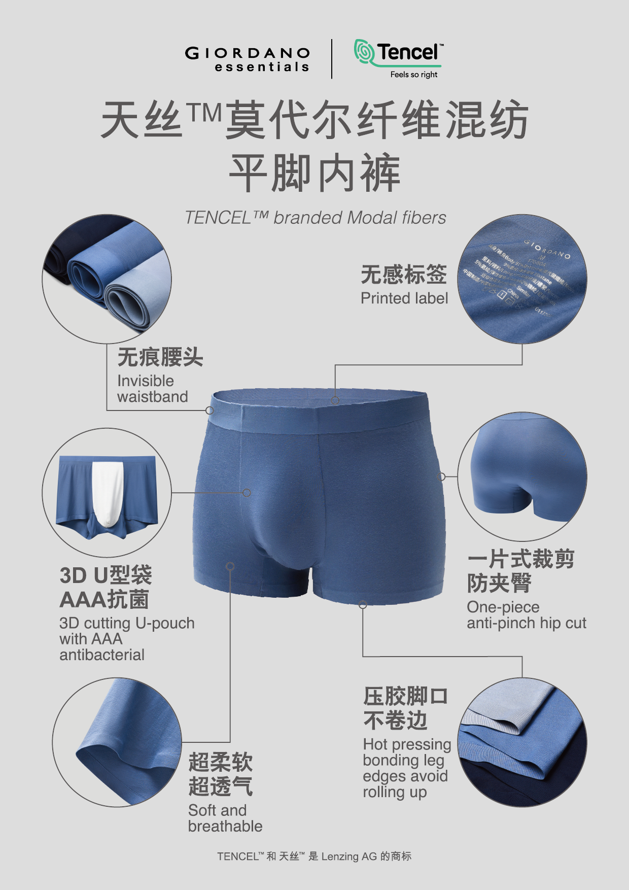 佐丹奴男装莫代尔平角内裤3条装(贴身衣物,不设退换)01172201