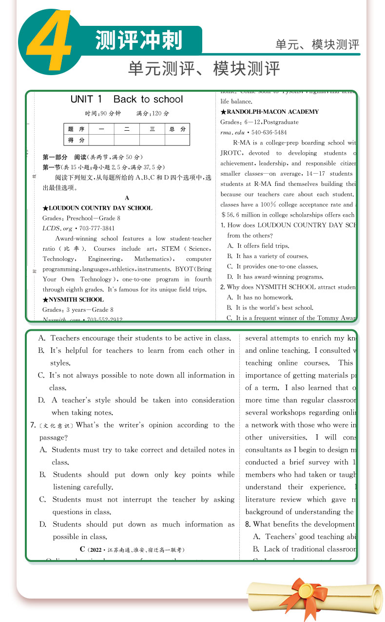 【译林版】高中英语必修(第一册) 实验班全程提优训练