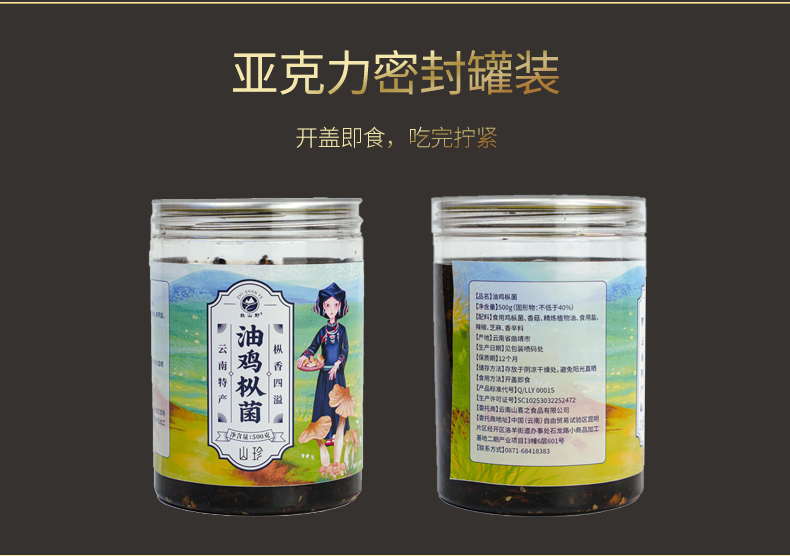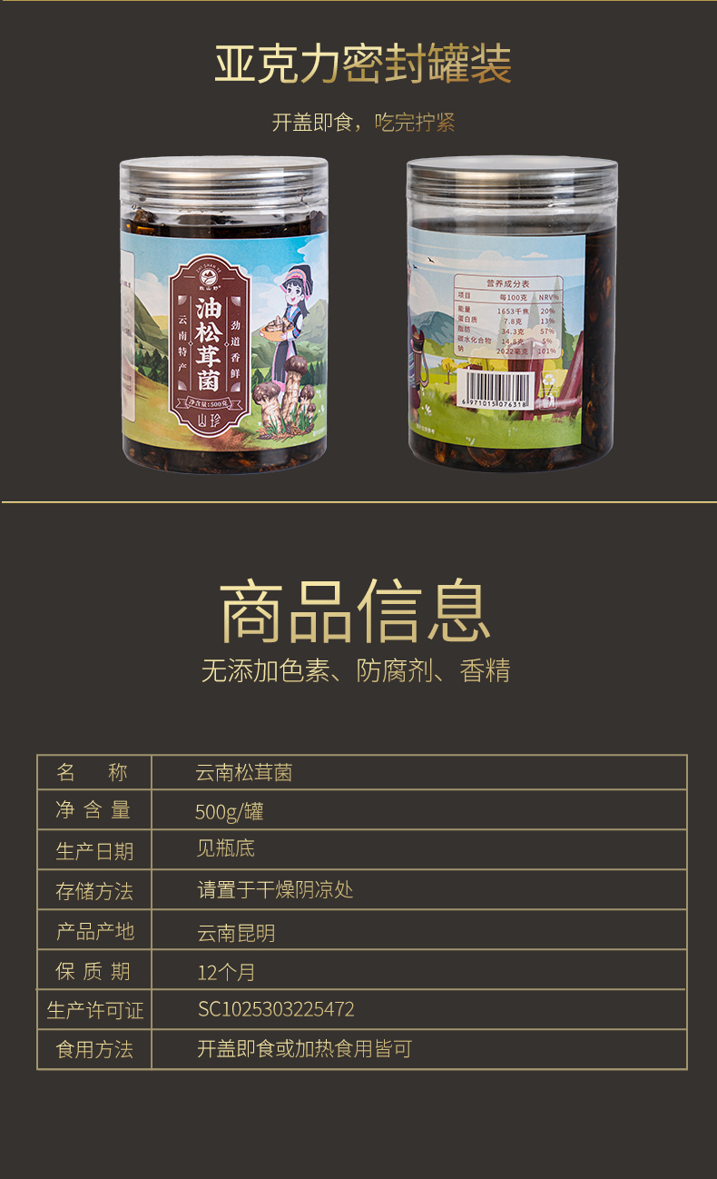 致山野云南特产油鸡枞菌油松茸菌油牛肝菌瓶装500g