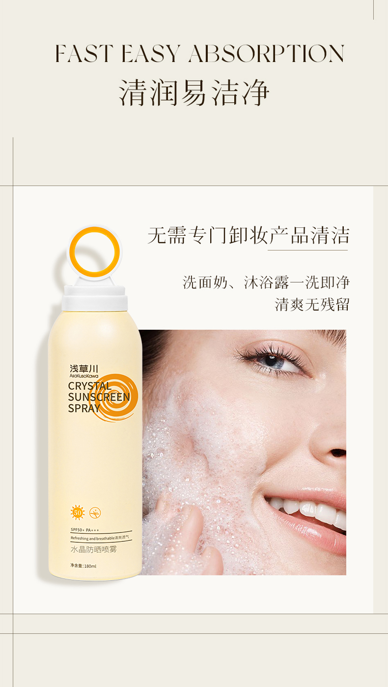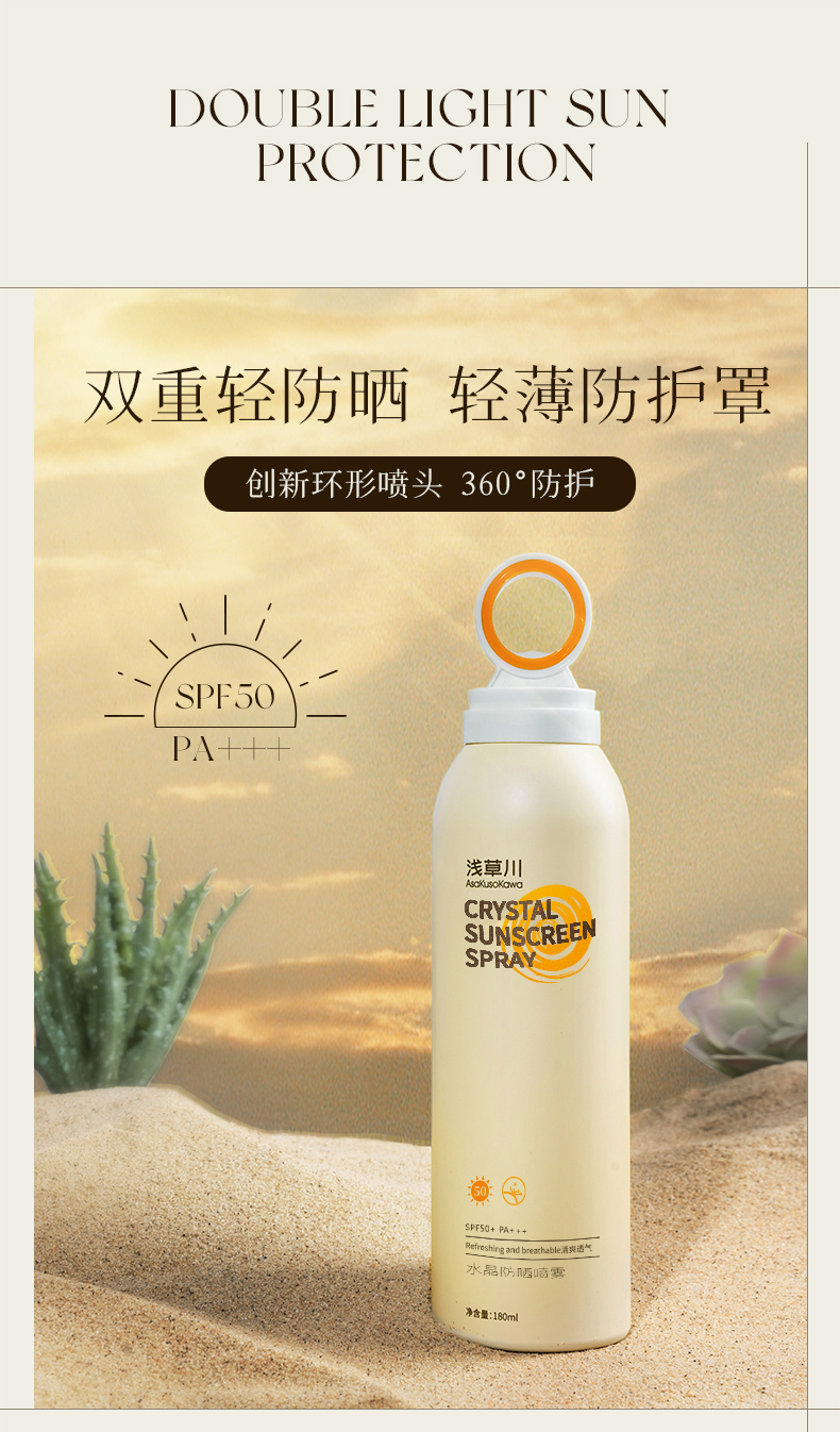 【买1送1,两瓶49元】防水防汗,全身可用!戴森头浅草川防晒喷雾SPF50 PA+++-杭州仓发