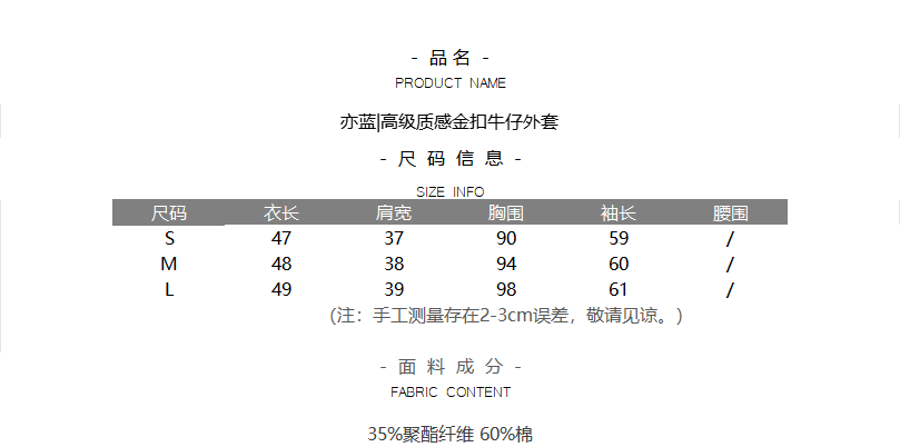 亦蓝|高级质感金扣牛仔外套(KUROKI进口牛仔)