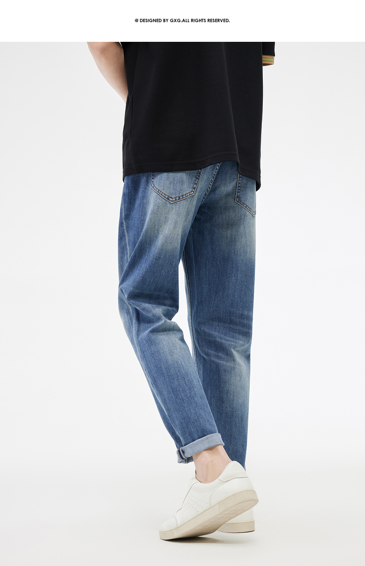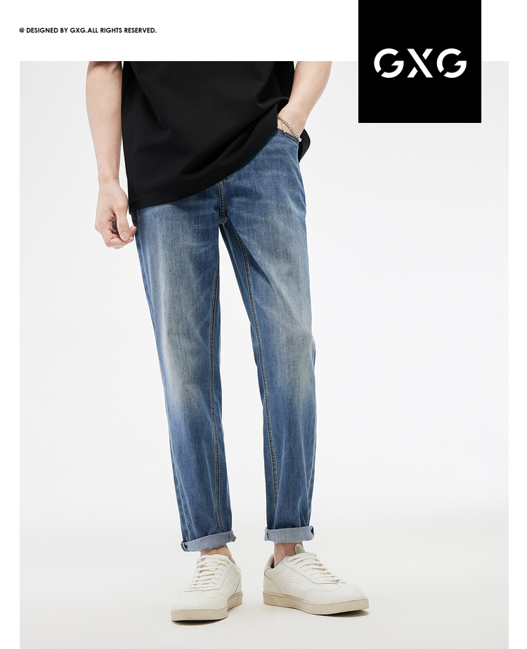 GXG男装 冰氧吧透气凉感基础直筒修身牛仔裤男长裤 夏季热卖