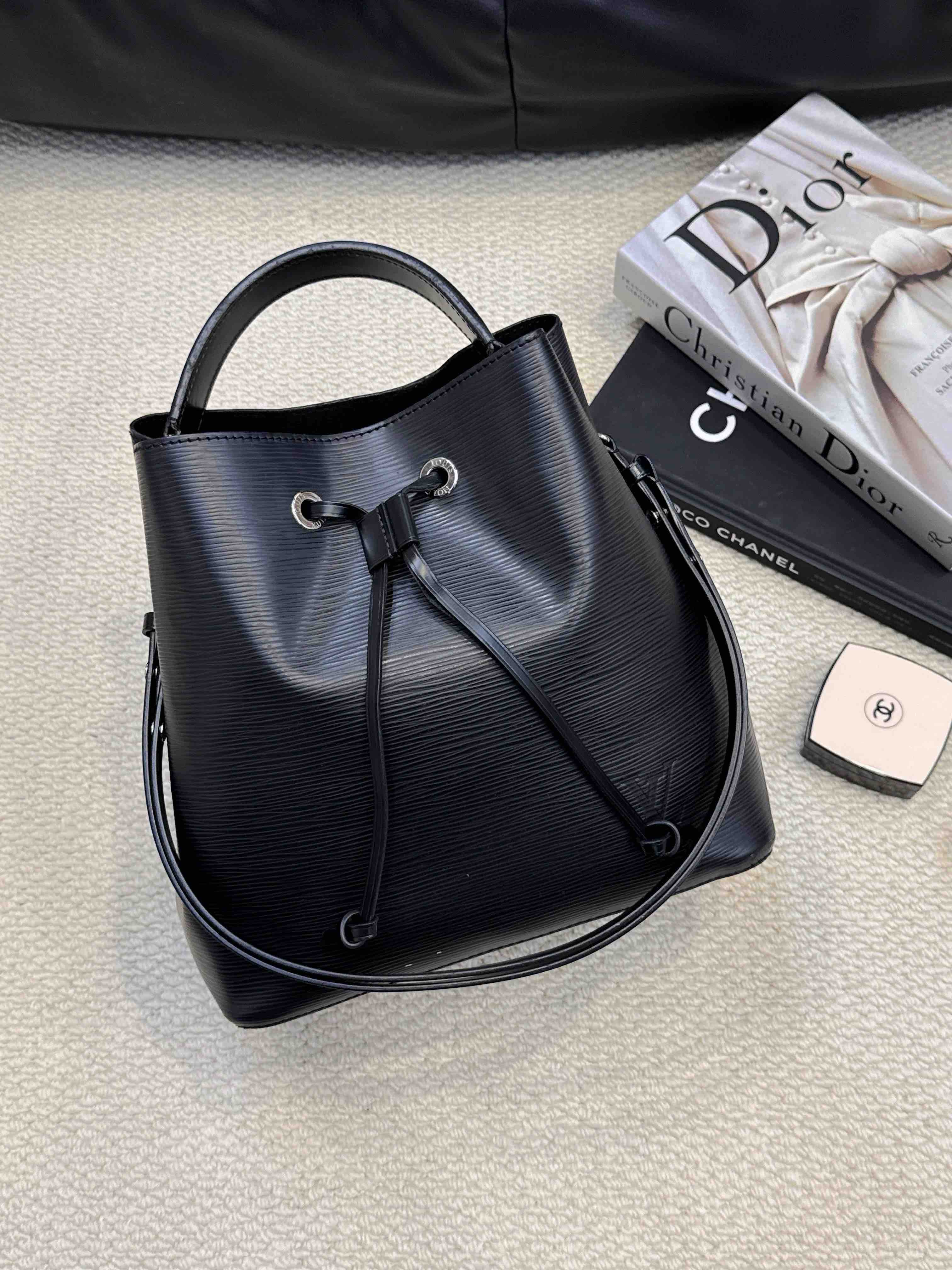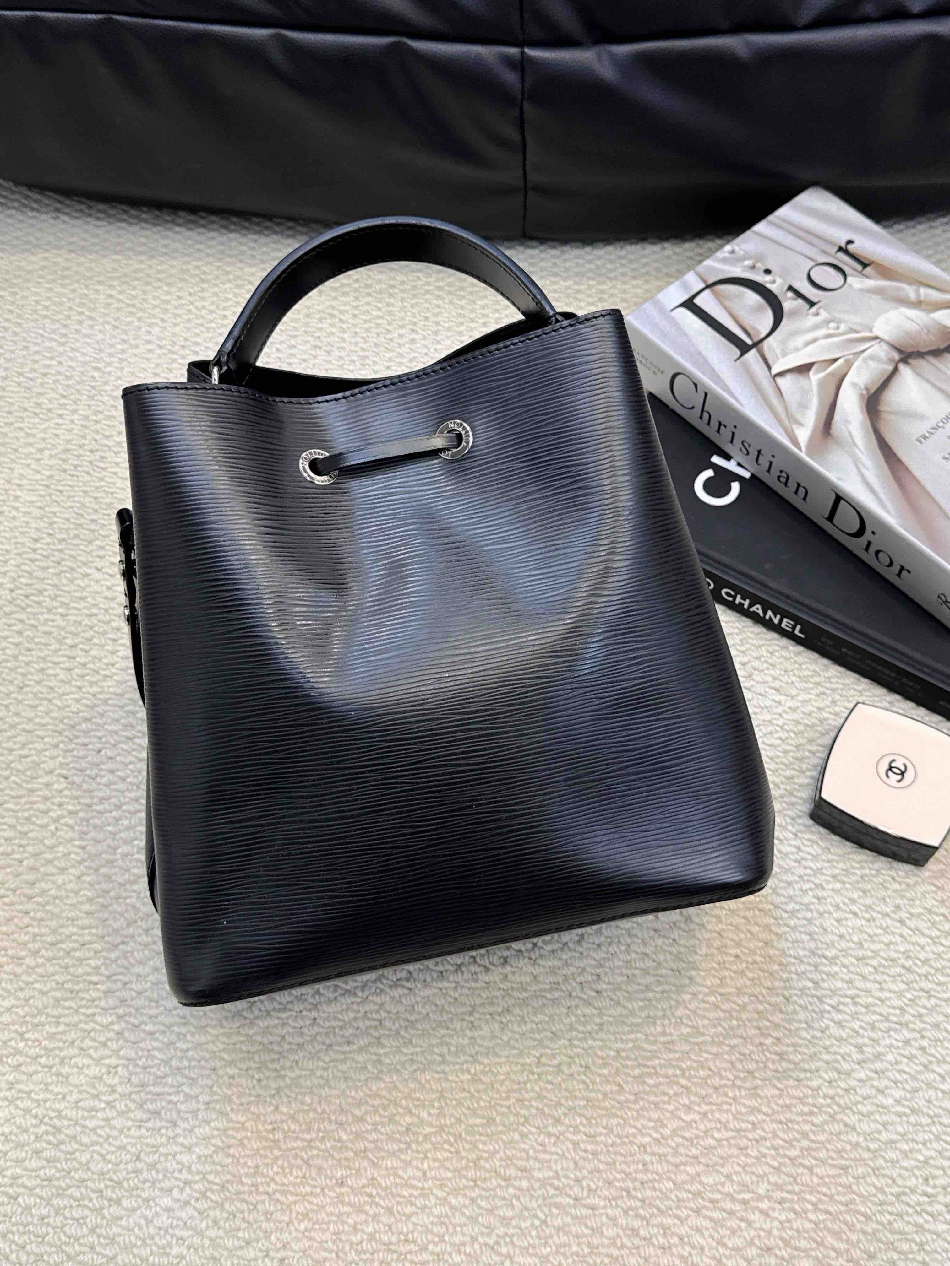 【商品详情】正品二手 Lv 中号 黑色 水波纹 牛皮 Neo Noe 水桶包⏱️ 95新 26x26 配件:肩带×2。底部边角一处轻微使用磨损感 抽绳部分配皮轻微使用开胶 大热经典款