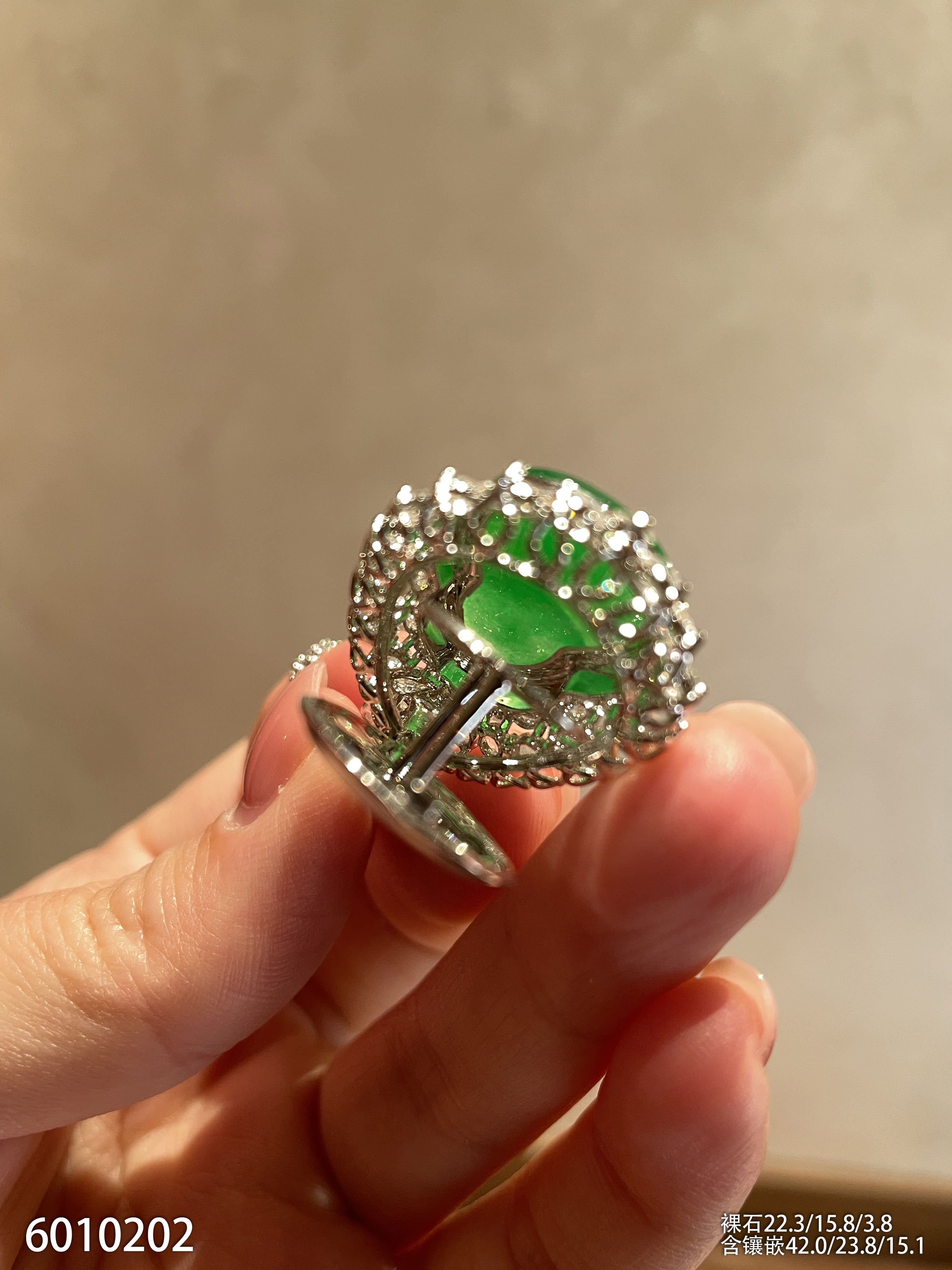 132-2123701,老坑高冰艳绿蛋面戒指,6599