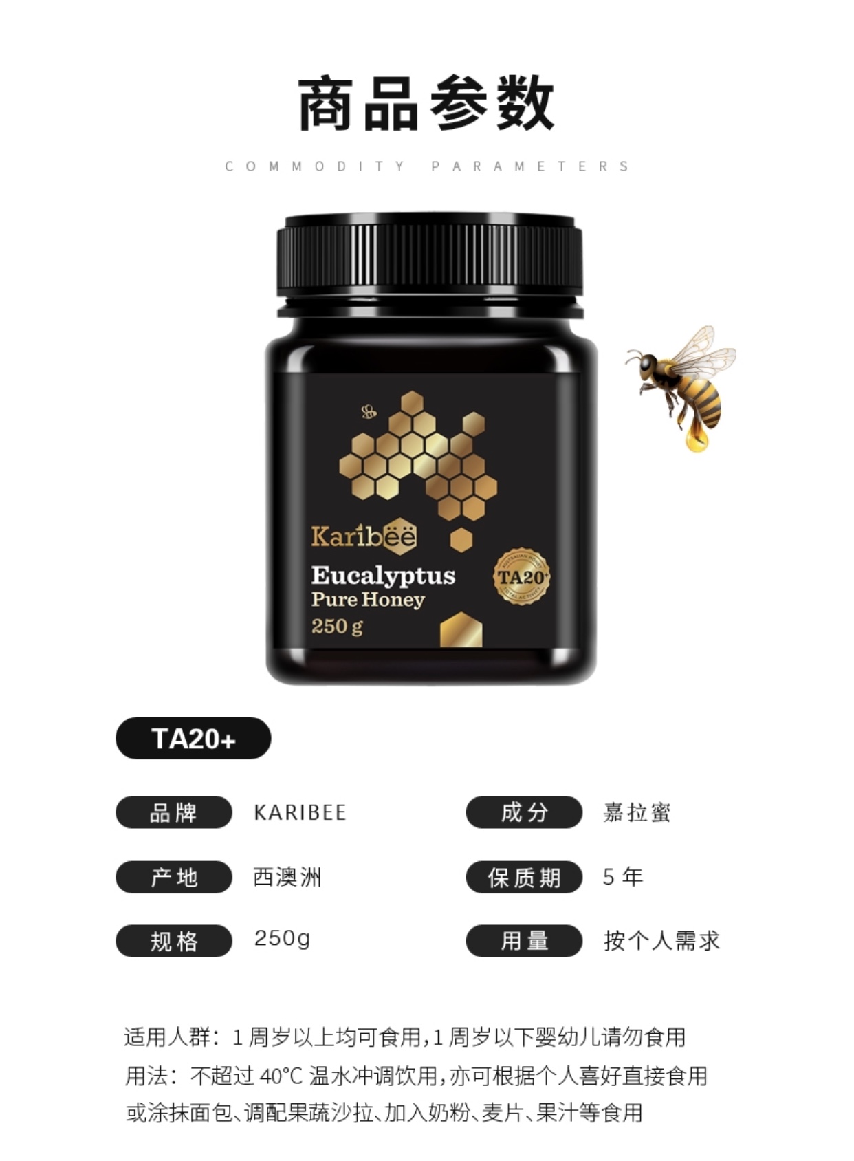 Karibee可瑞比桉树蜜TA20+ 250g澳洲原装进口
