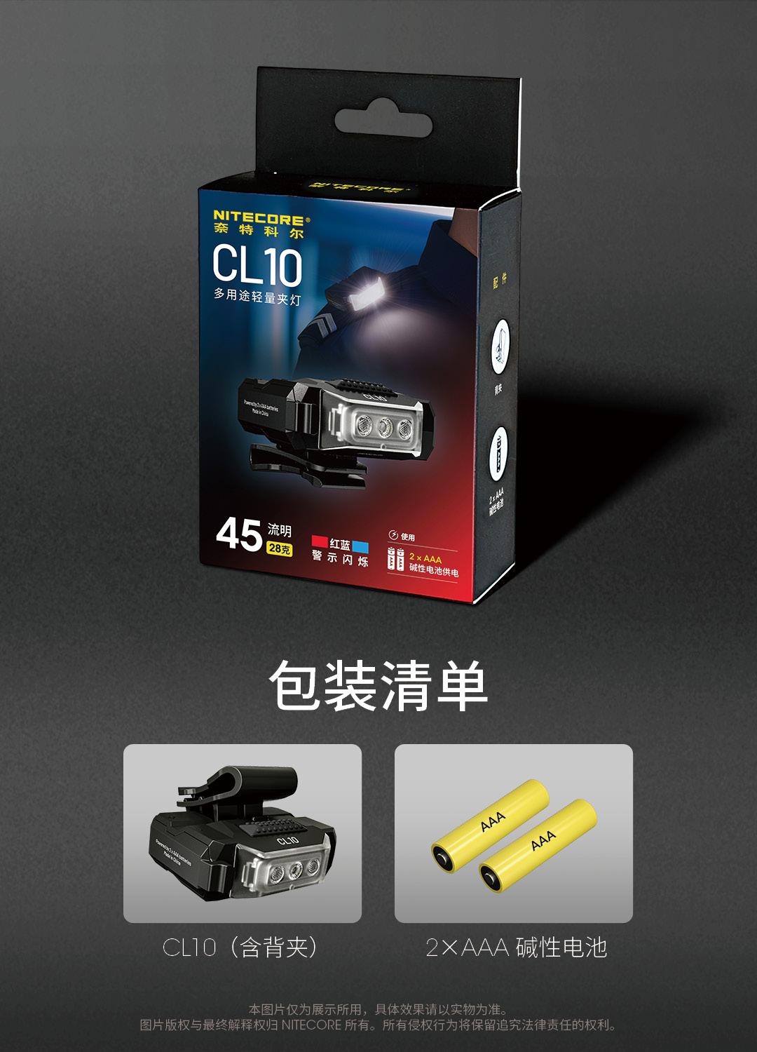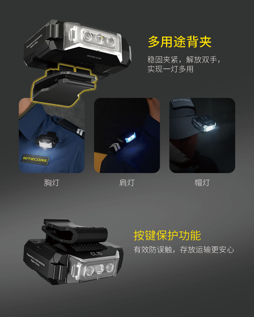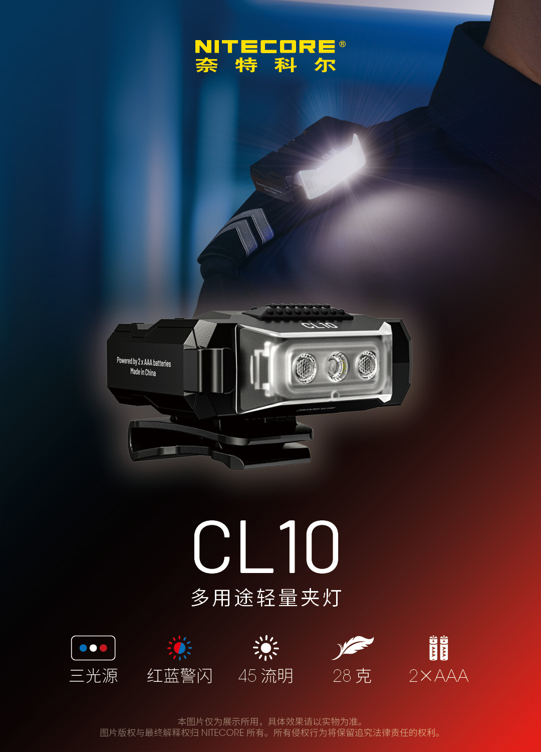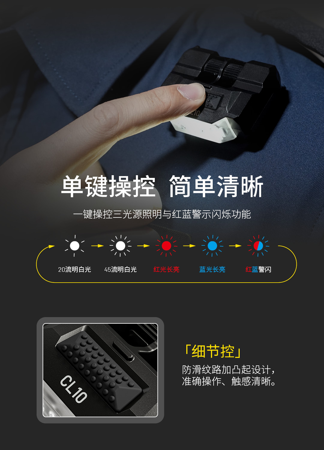 NITECORE奈特科尔 CL10执勤巡逻肩灯 白光照明红蓝警闪身份标识特勤安保