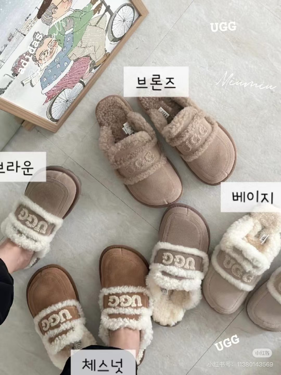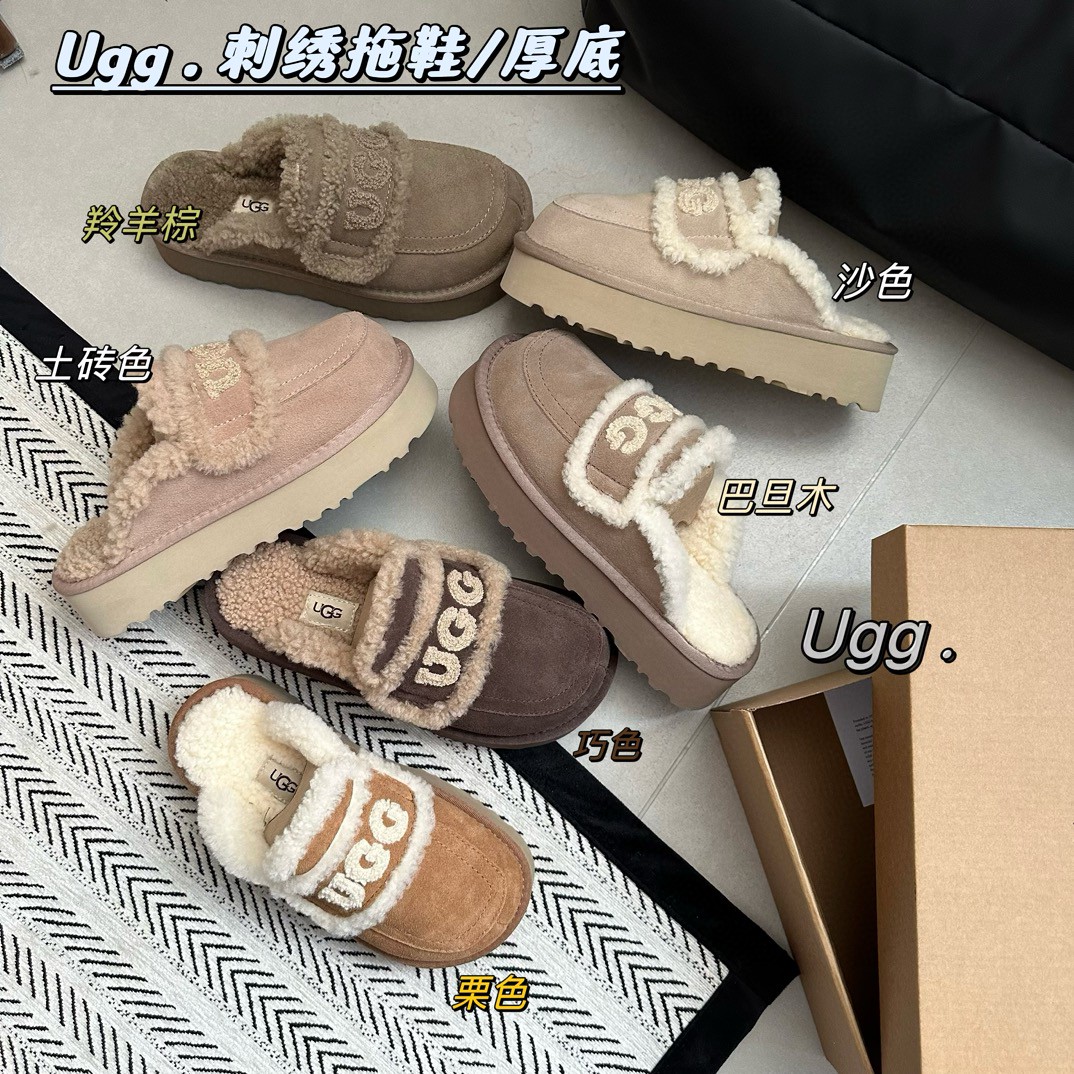 【女款】河南桑坡新款油叽叽刺绣拖鞋平底 羊皮毛一体雪地靴 拖鞋建议大一码