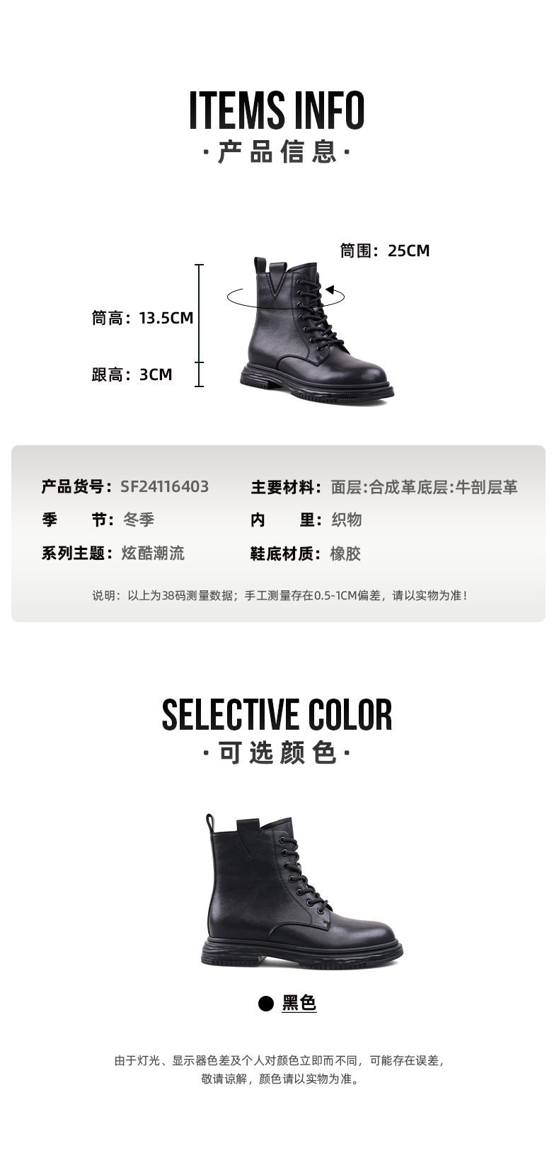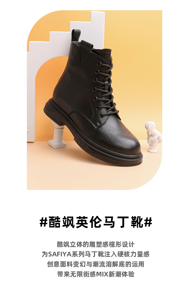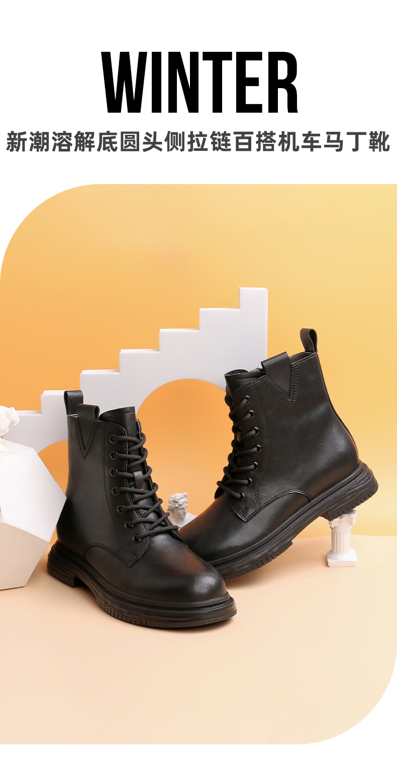 【预热双12】Safiya/索菲娅 新潮溶解底2022冬季新款圆头侧拉链百搭机车马丁靴 SF24116403