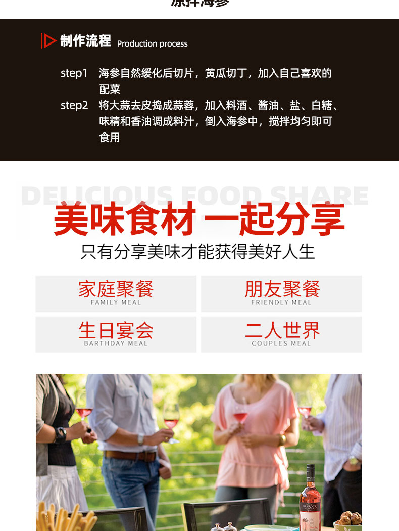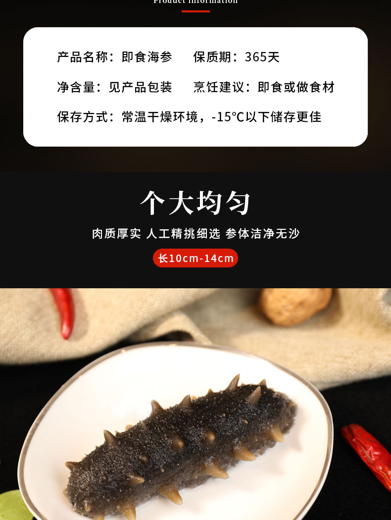 即食辽刺参🎁大连海参辽刺参高营养开袋即食8-10头/500g