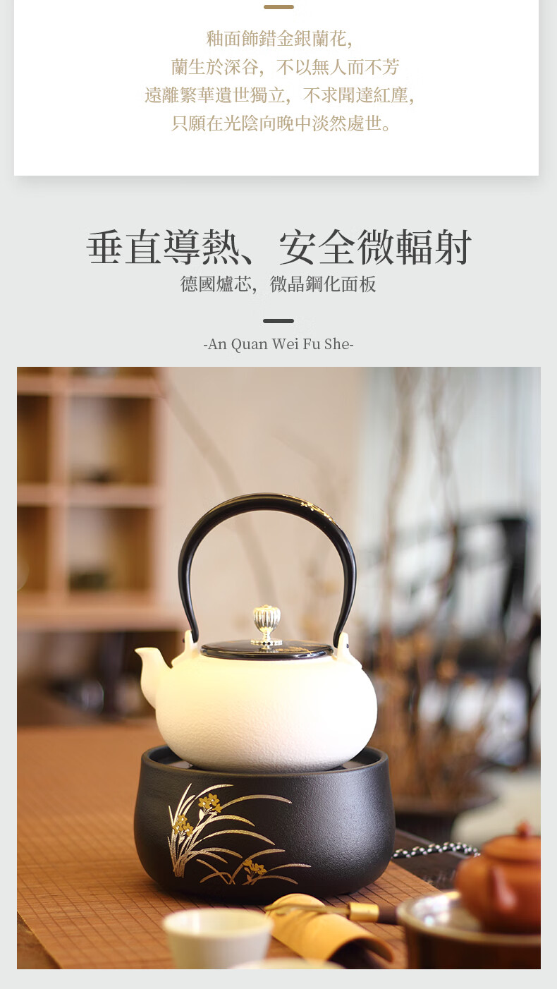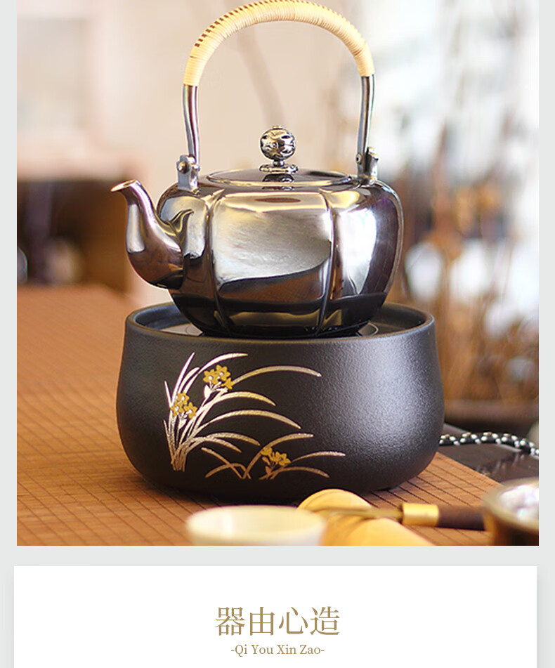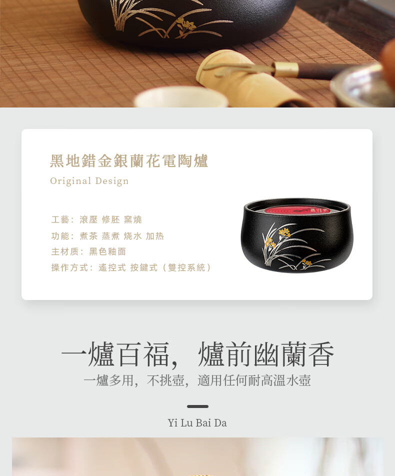 莺歌烧 黑底银松电陶炉 莺歌烧电陶炉轻音家用遥控器烧水煮茶器茶道泡茶茶炉【厂家直发】