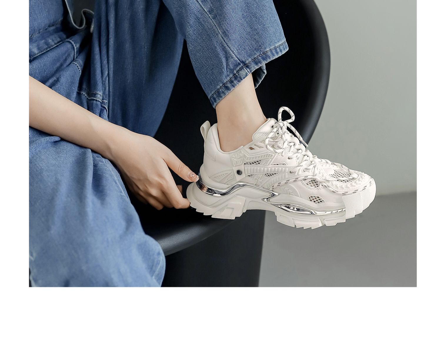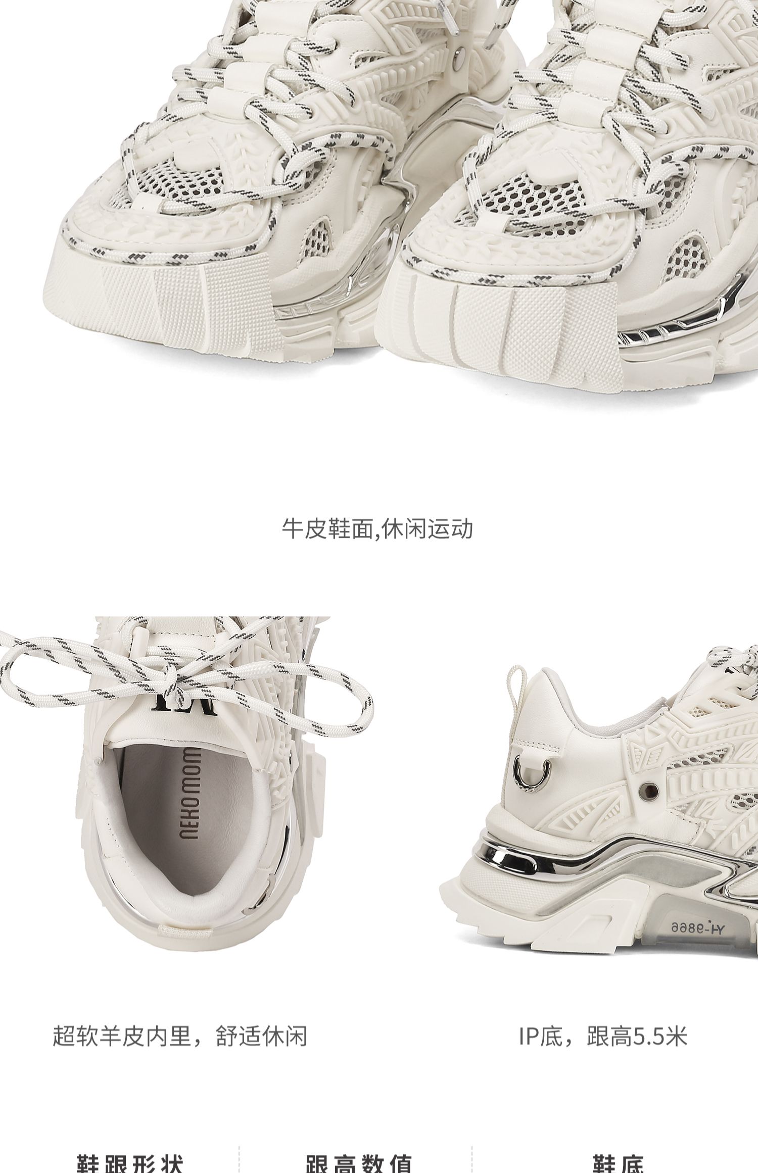 nekomomo2023年夏季新款商场同款牛皮网面超轻厚底运动鞋老爹鞋女M22AM11401