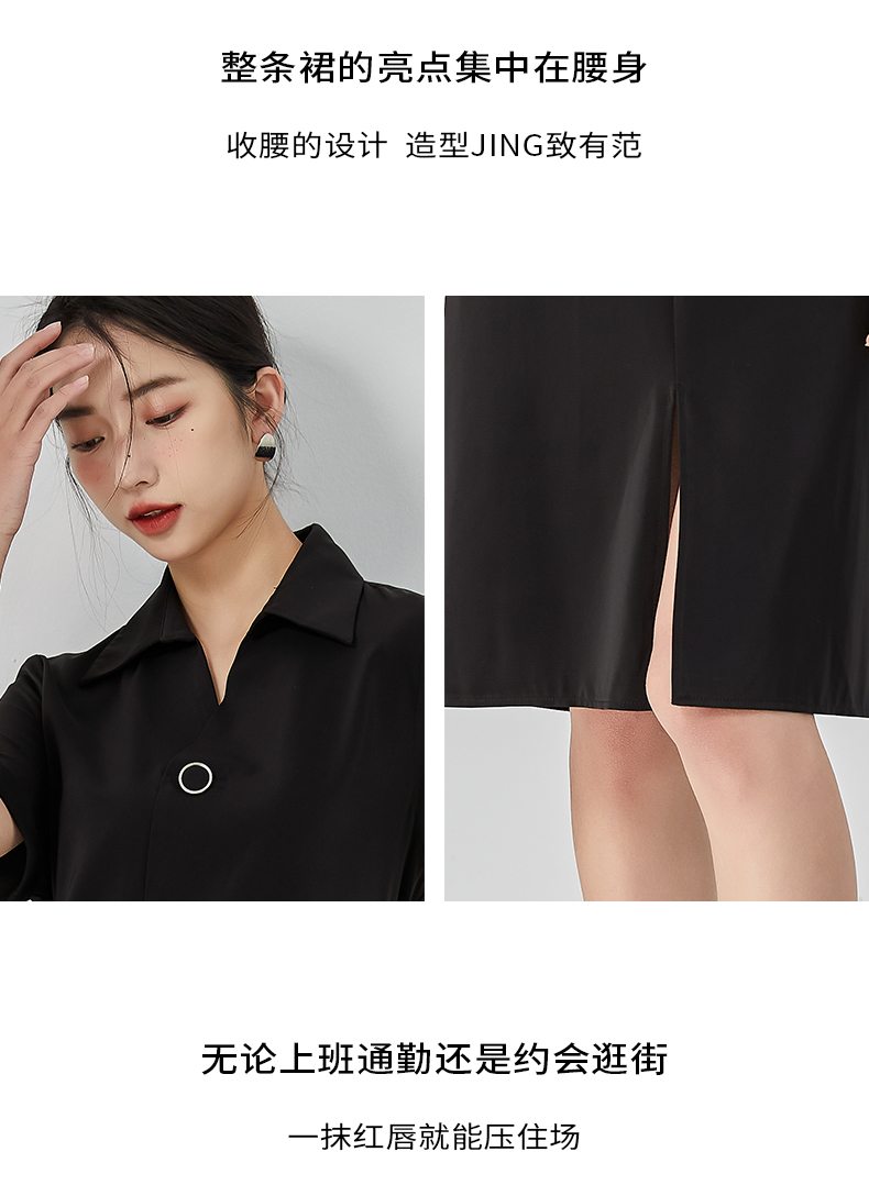 oldcolour2023夏季新款黑色气质高腰显瘦高级感连衣裙GN21101744